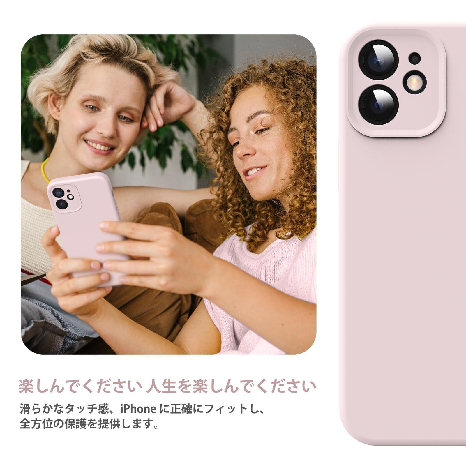 Supdeal iPhone 12 ケース 対応液体シリコン [耐衝撃] [柔軟TPU液体シリコン] [ソフトタッチ] [レンズの全面保護] [指紋防止] [落下防止] [滑り防止] 軽量 4層保護 アイフォン 12 スマホカバー 6.1インチ(ライトピンク)