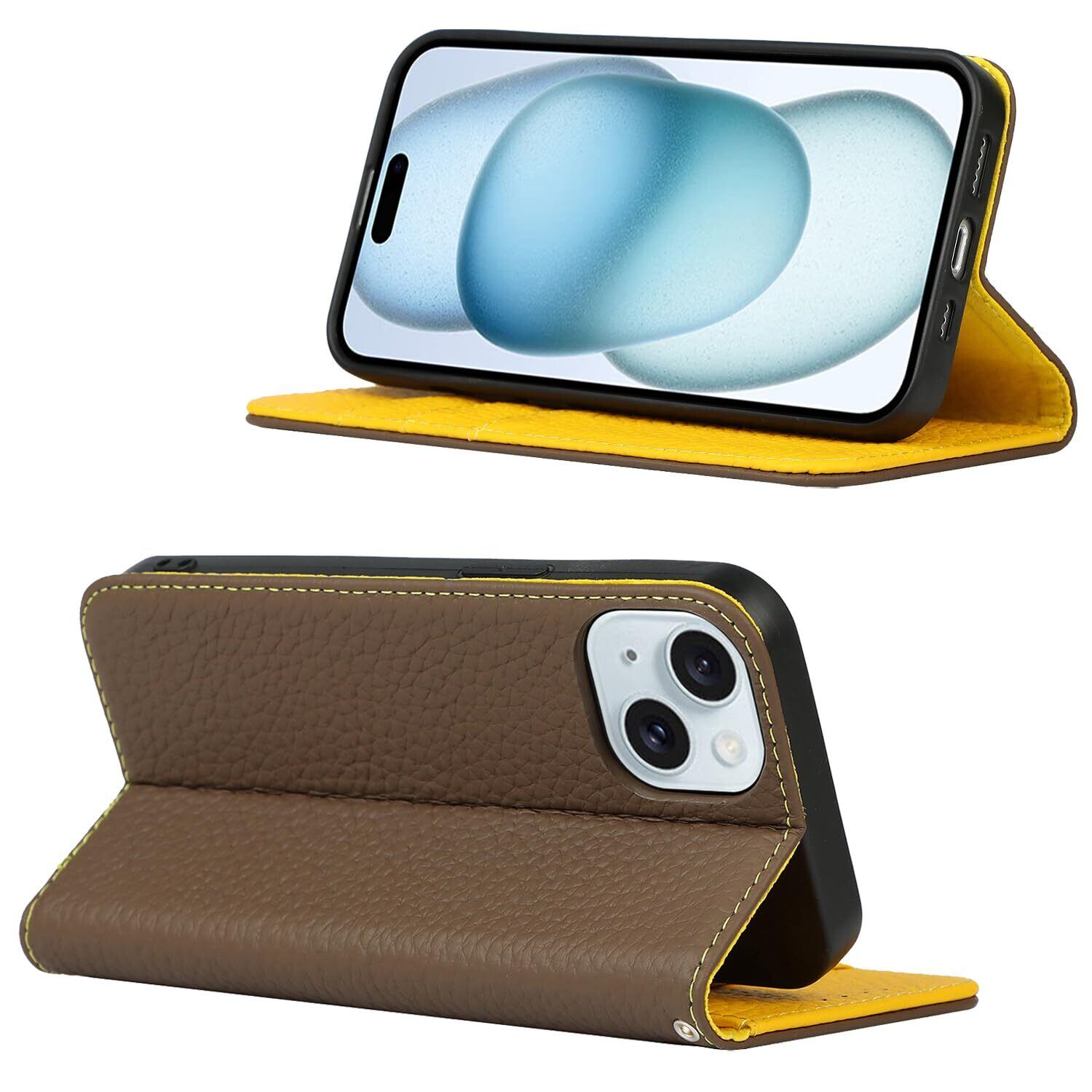 アイフォン for iPhone 15 ケース 牛革 本革 手帳型 for iPhone15 財布型カバー for iPhone 15 本革 手帳型 携帯スマホカバー 人気 おしゃれ 内蔵マグネット 耐汚れ 耐衝撃 カード収納 軽量 人気 -ブラウン