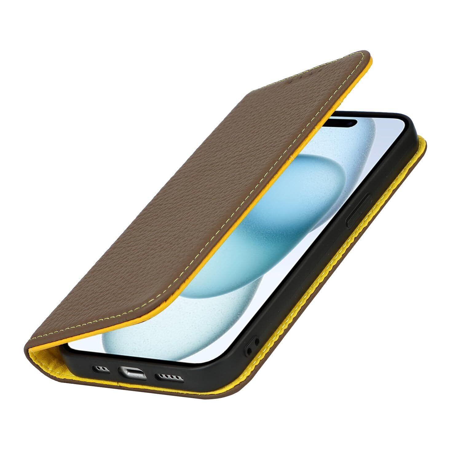 Eastwave アイフォン iPhone 15 ケース 牛革 本革 手帳型 iPhone15 財布型カバー iPhone 15 本革 手帳型 携帯スマホカバー 人気 おしゃれ 内蔵マグネット 耐汚れ 耐衝撃 カード収納 軽量 人気 -ブラウン