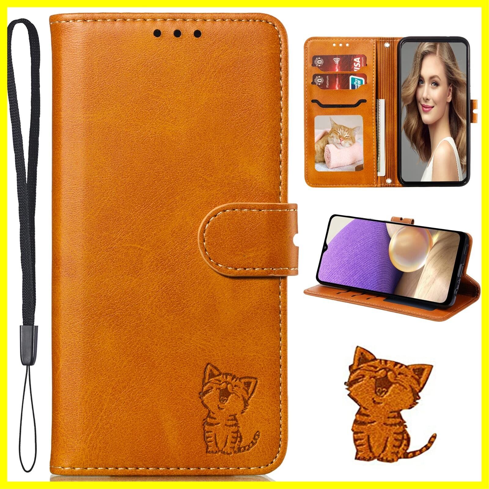Xiaomi Redmi 12 5G XIG03 ケース 手帳型 Redmi 12 5g XIG03 手帳型ケース スマホケース シャオミ レッドミ12 5G ケース 携帯ケース redmi12 case カバー PUレザー TPUケース ストラップ付き 財布型 ベルトマグネット スタンド機能 笑顔猫柄 耐衝撃 汚れ防止 薄型 (Xiaomi Redmi 12 5G 対応) ライトブラウン