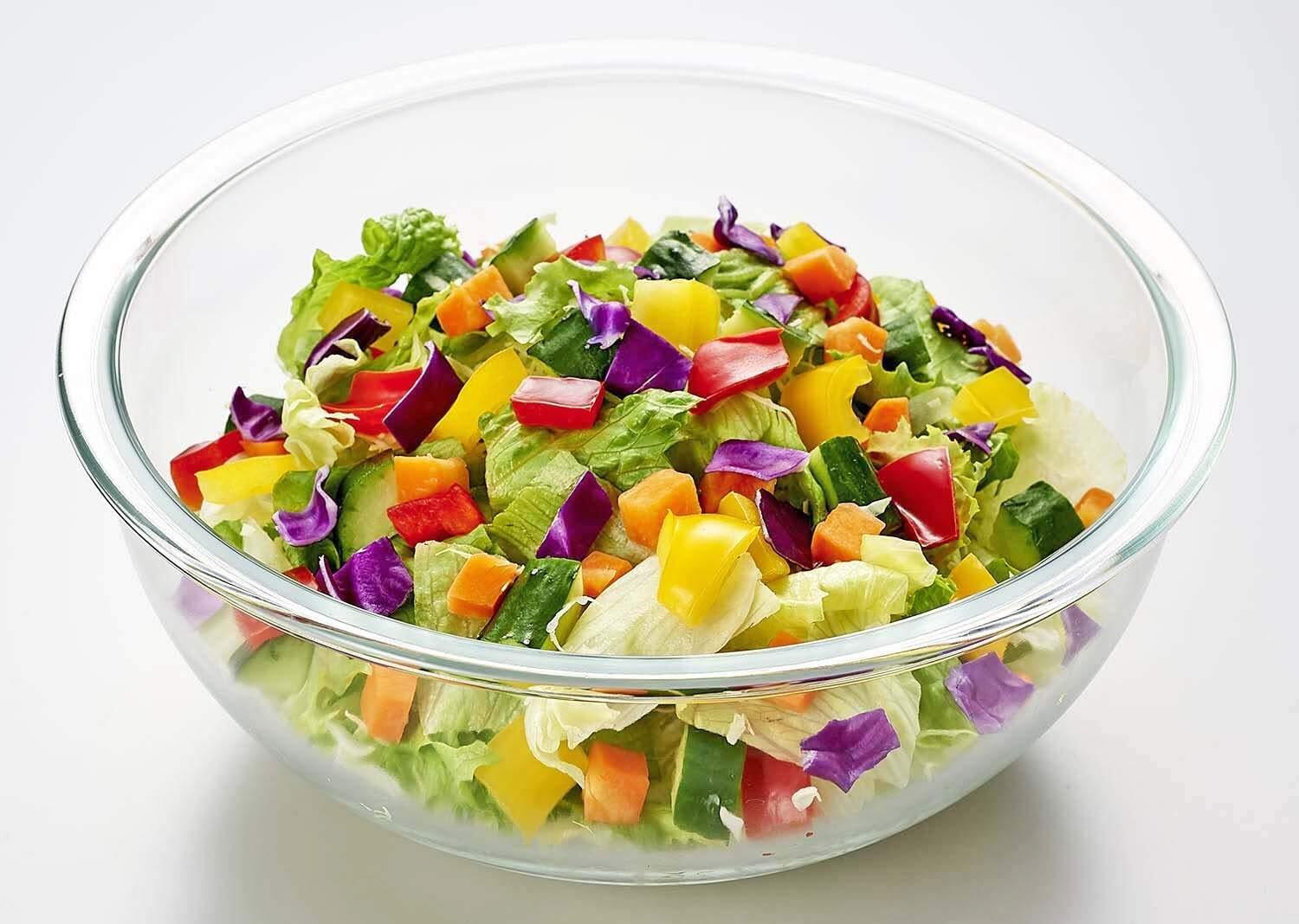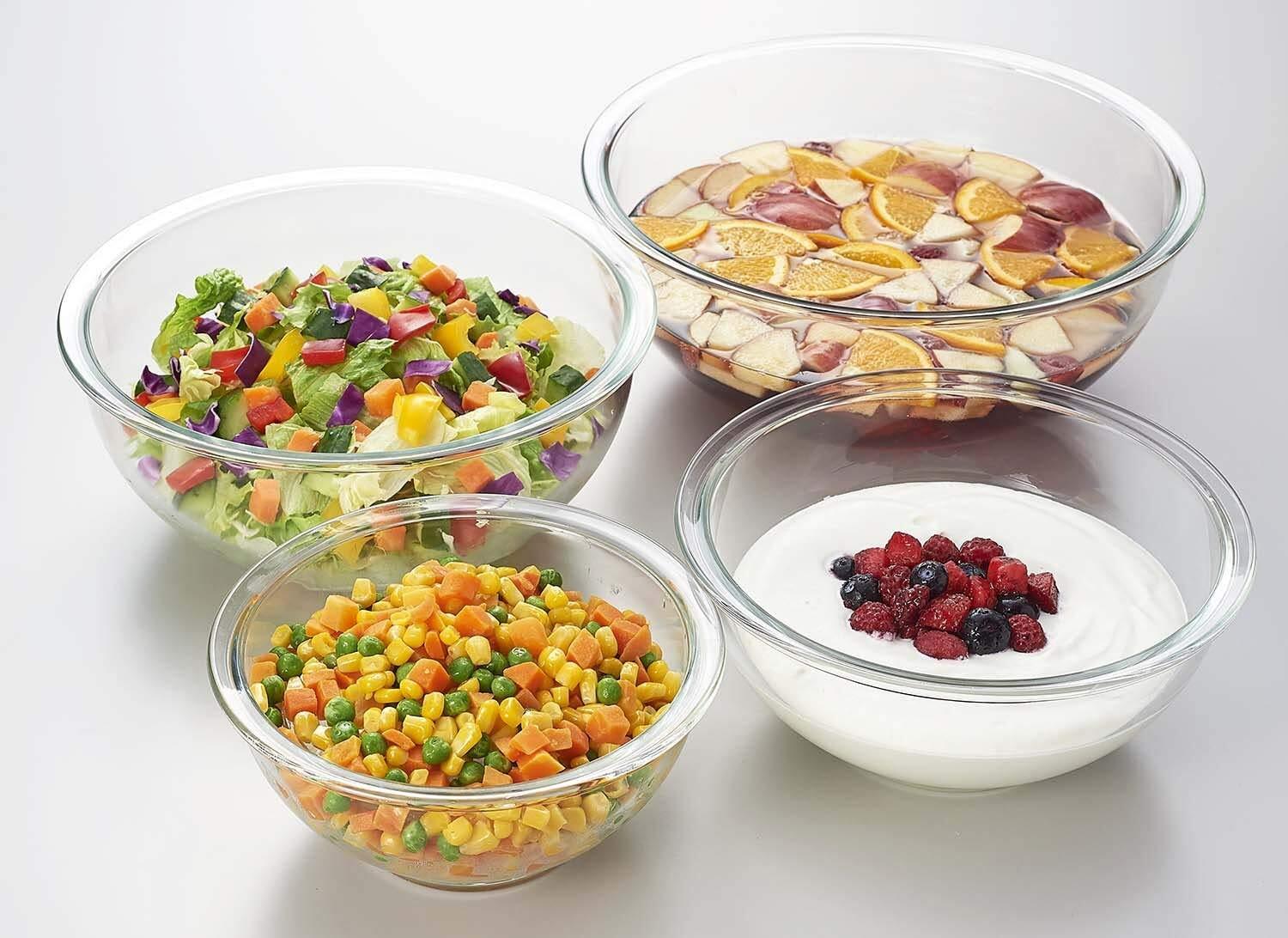 ガラス製ならではの清潔感があるテーブルウェアとして、サラダなど調理してそのまま食卓へ。