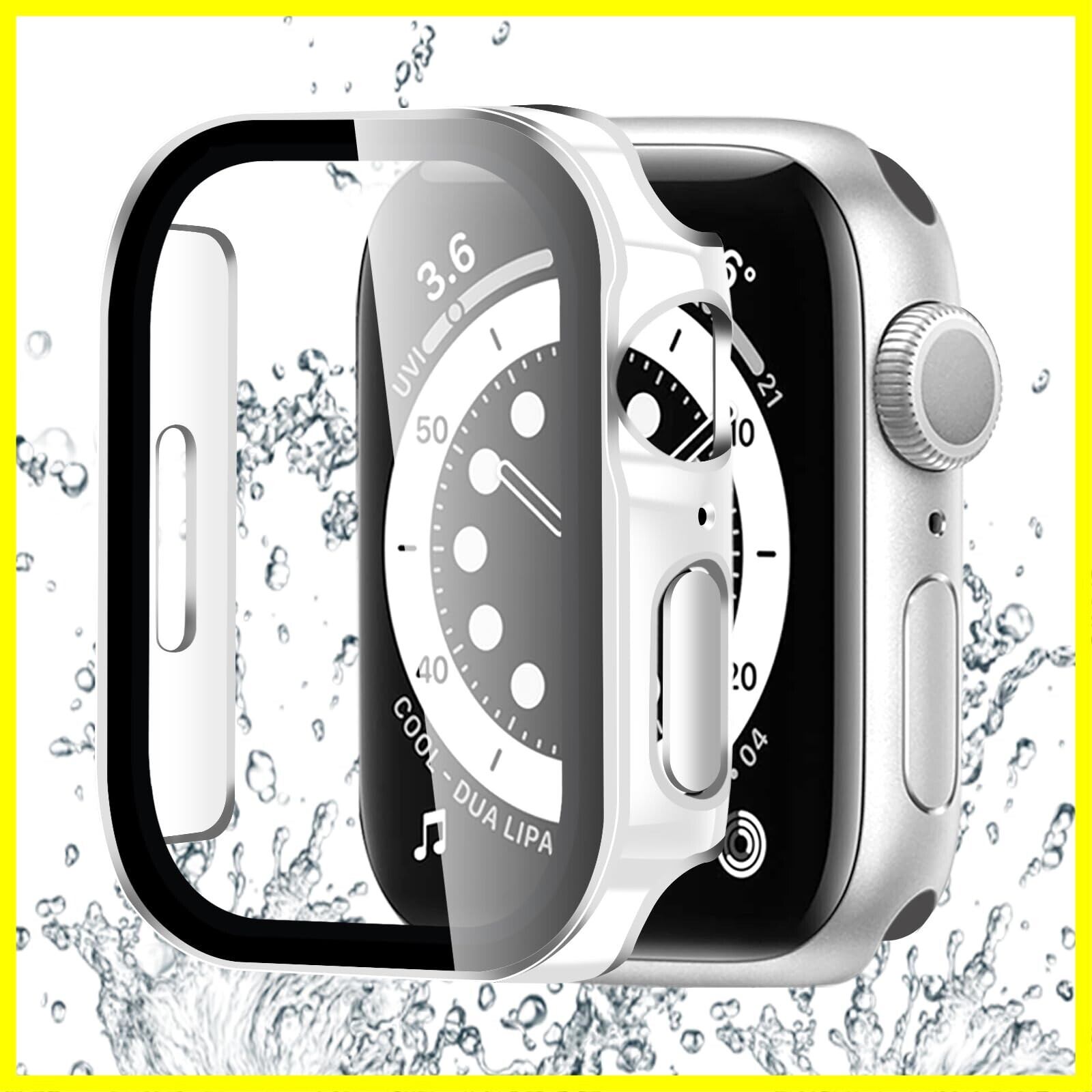 BELIYO 対応 Apple Watch ケース Series SE3/SE2/SE/6/5/4 40mm 防水ケース 3D直角エッジデザイン メッキ加工 Apple Watch カバー ガラスフィルム 一体型 アップルウォッチ カバー PC素材 日本旭硝子材 二重構造 耐衝撃 アップルウォッチ ケース 全面保護 高耐久 高透過率 装着簡単 光沢のホワイト+シルバー