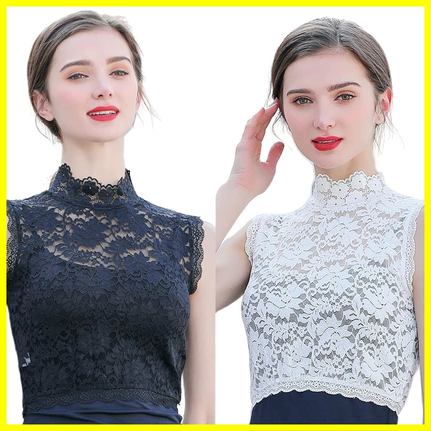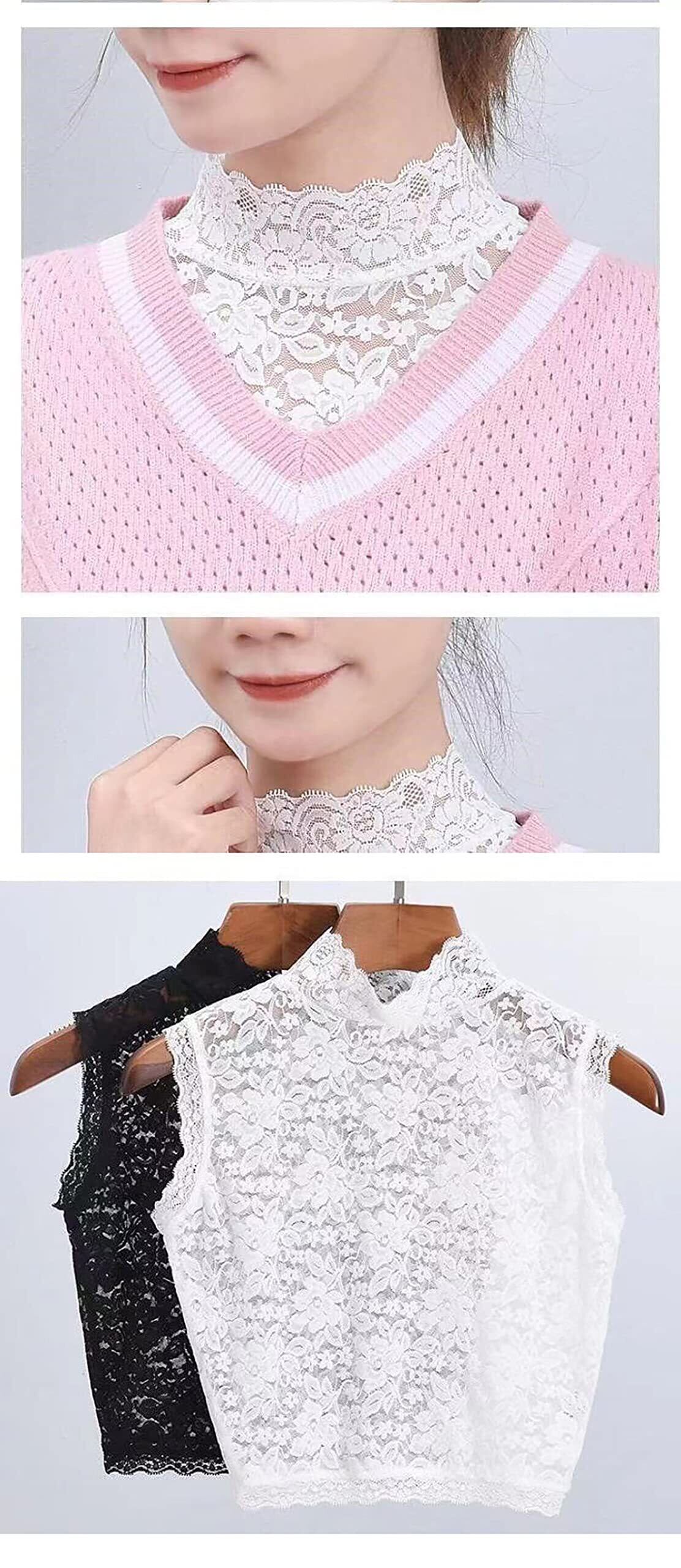 [YIXUANAI] レース 付け襟 レディース ハイネック シャツ 重ね着 つけ襟 タートルネック レイヤード風 ブラウスシャツ レイヤード チュールレース 立て襟 襟付き 紫外線対策 ハイネックブラウス 立て襟 uvカット タンクトップ 薄手