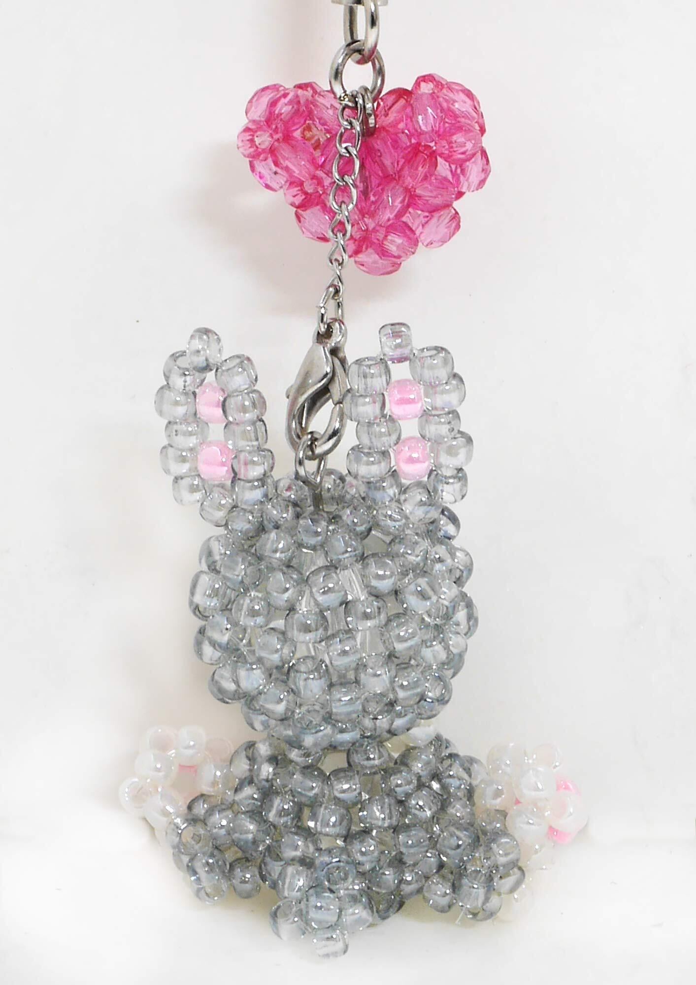 出来上がりサイズ:マスコット/タテ約4.5cm×ヨコ約3.2cm ハート/タテ約1.5cm×ヨコ約1.8cm 作品全長/約12cm