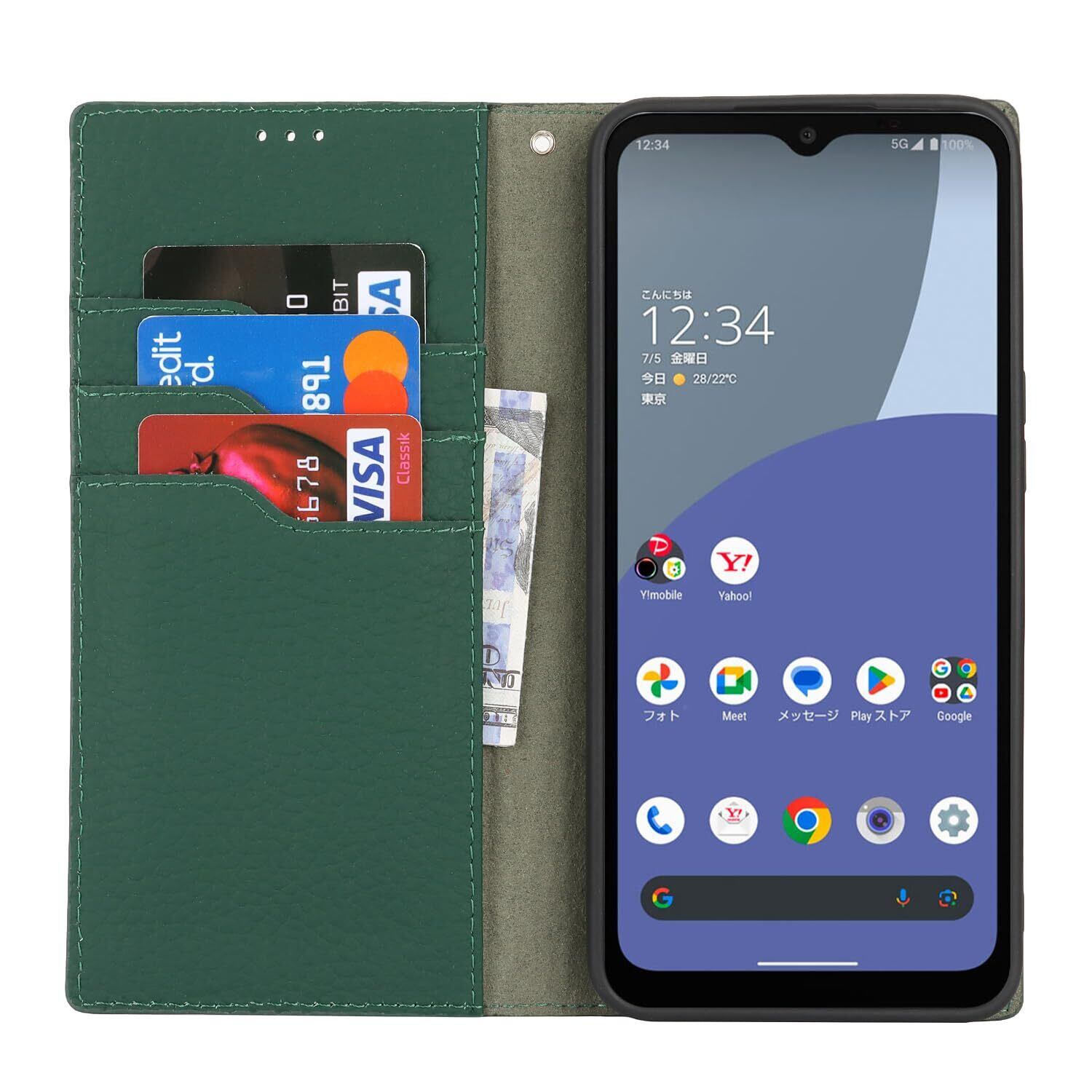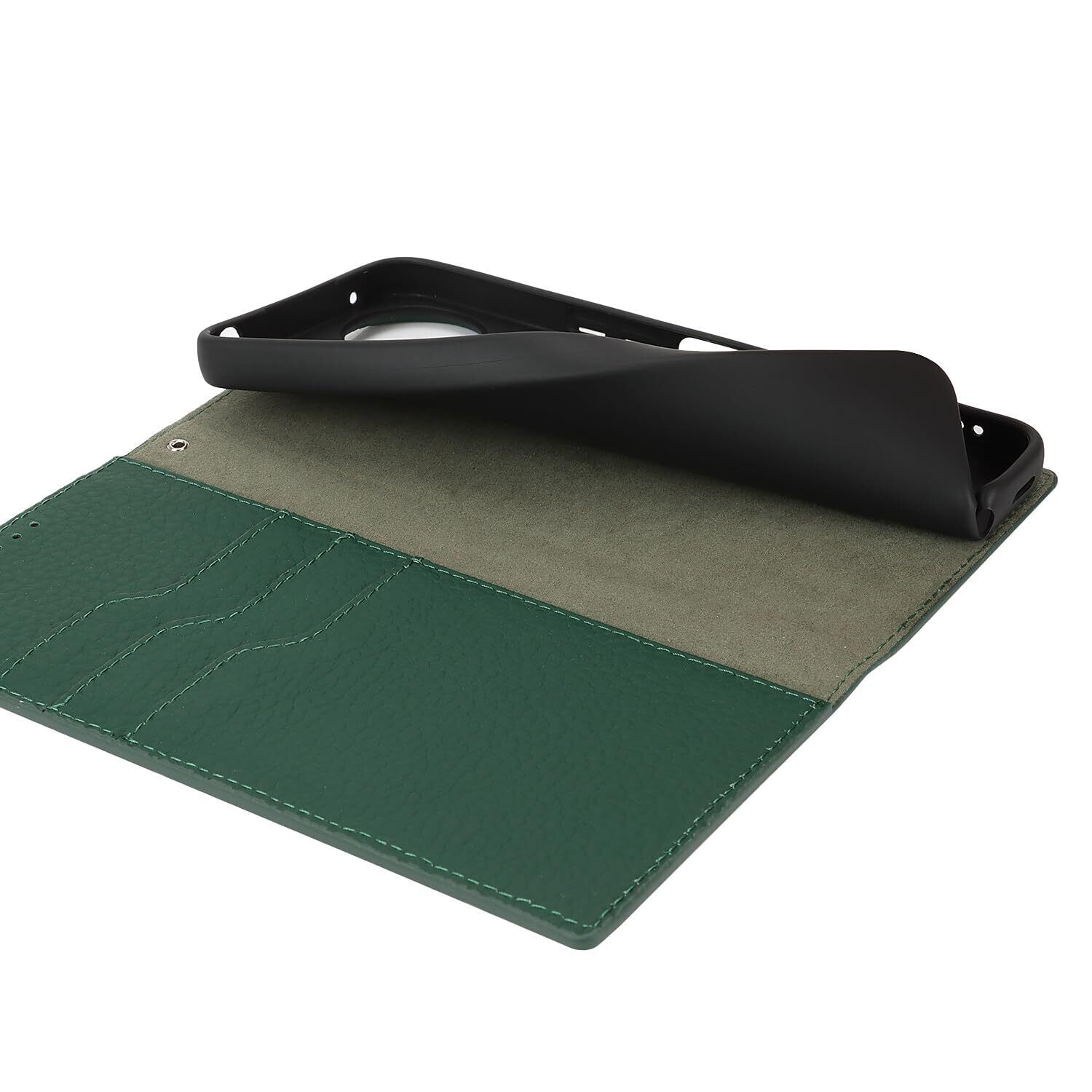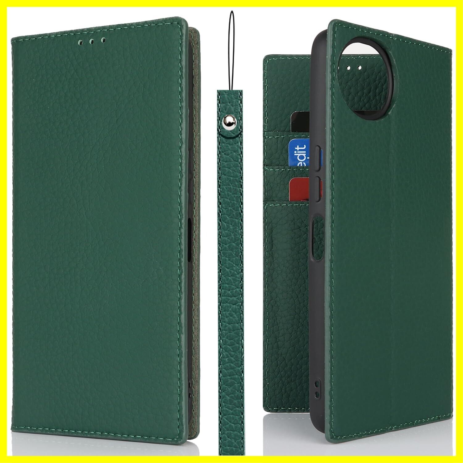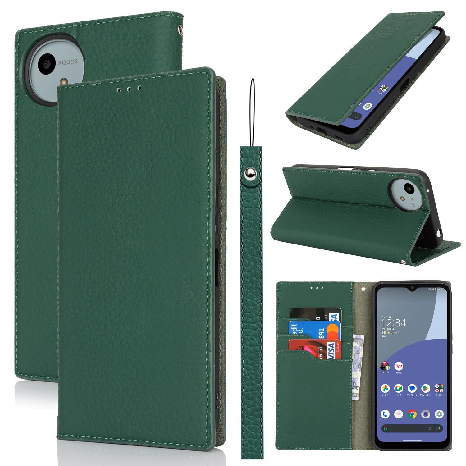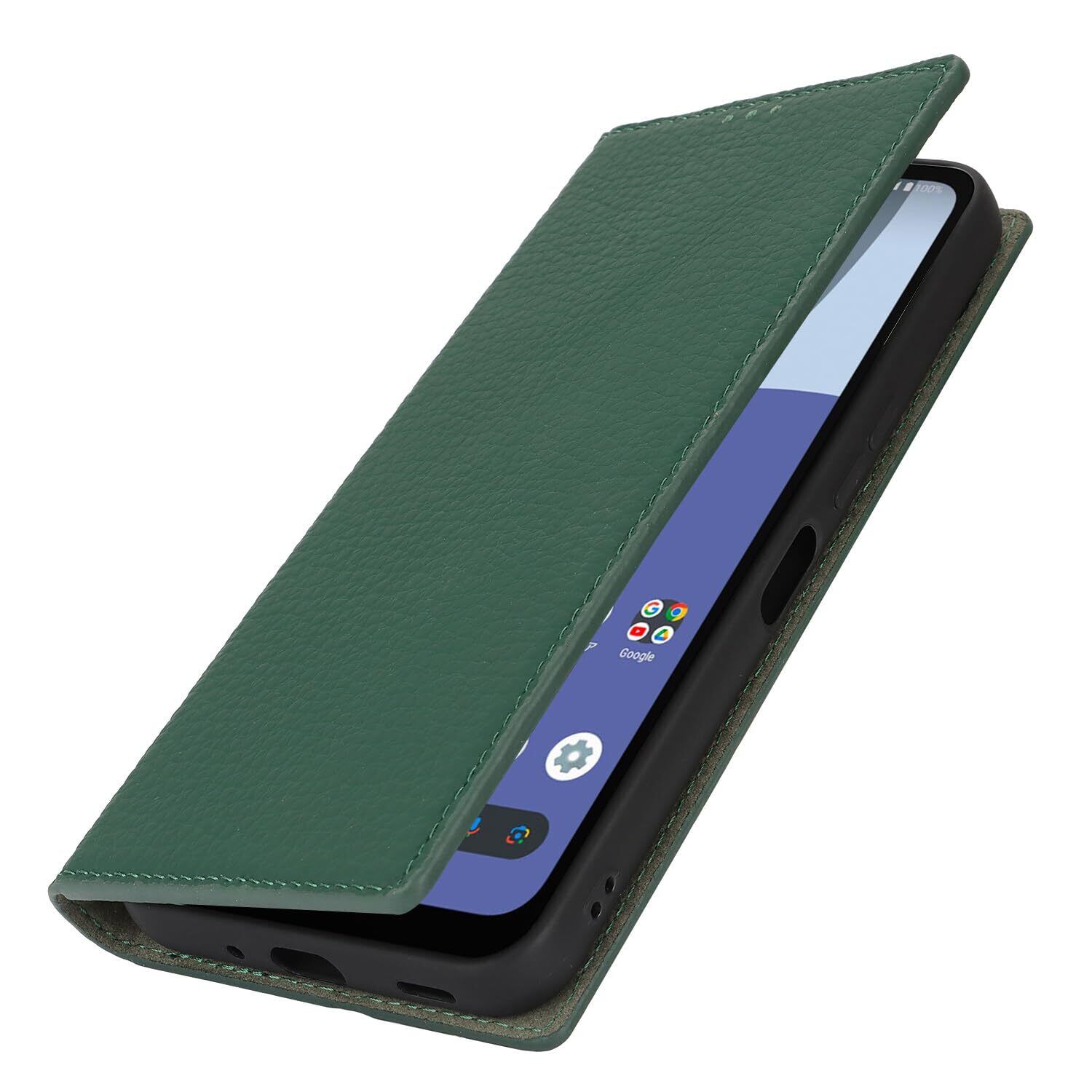 Eastwave Aquos Wish4 ケース 本革 牛革 SH-52E A402SH ケース 手帳型 カバー AQUOS WISH 4 SH-52E A402SH SH-M27 対応 手帳 本革 柔らかい 本皮 スプラットホール付き スプラット同梱 内蔵マグネット - ダークグリーン