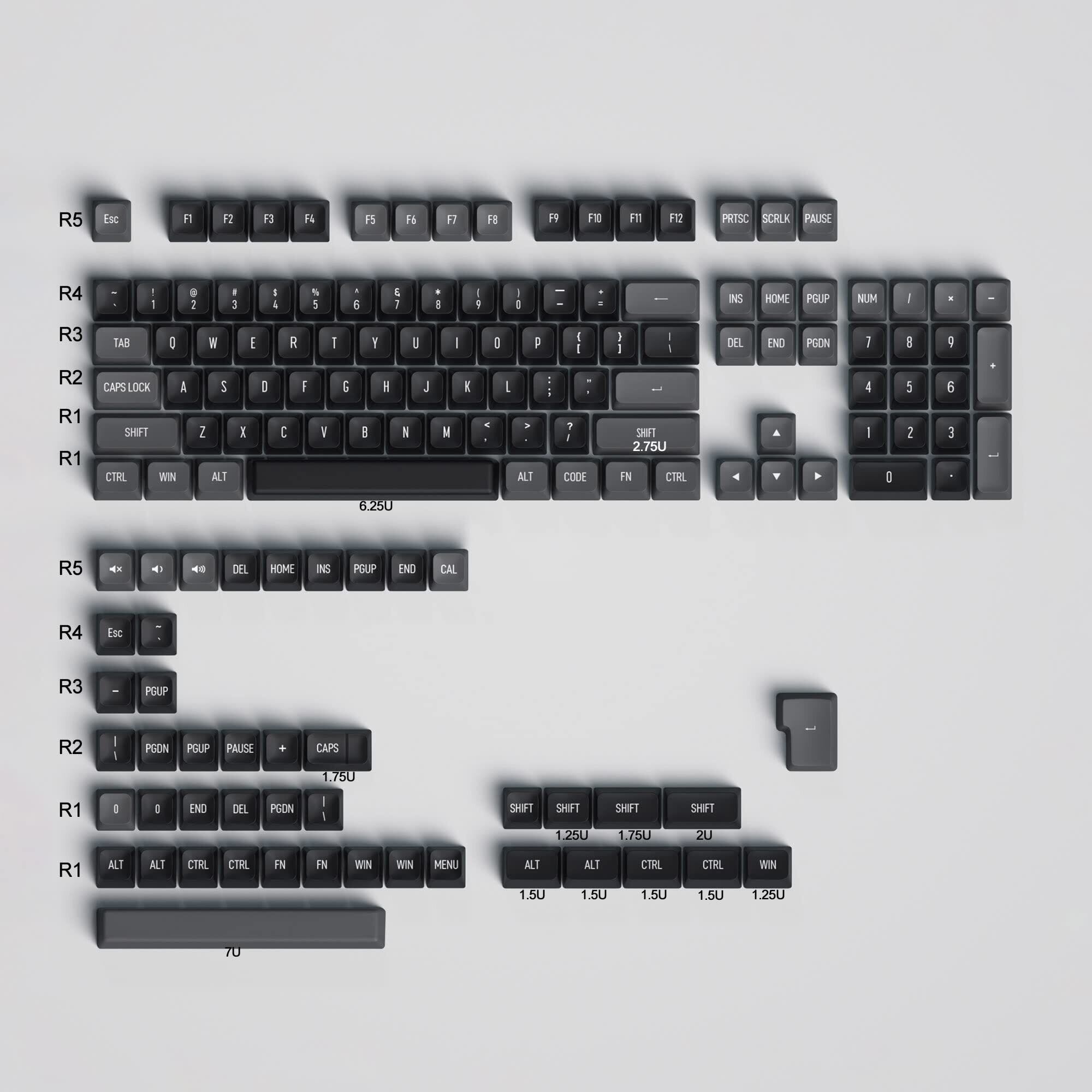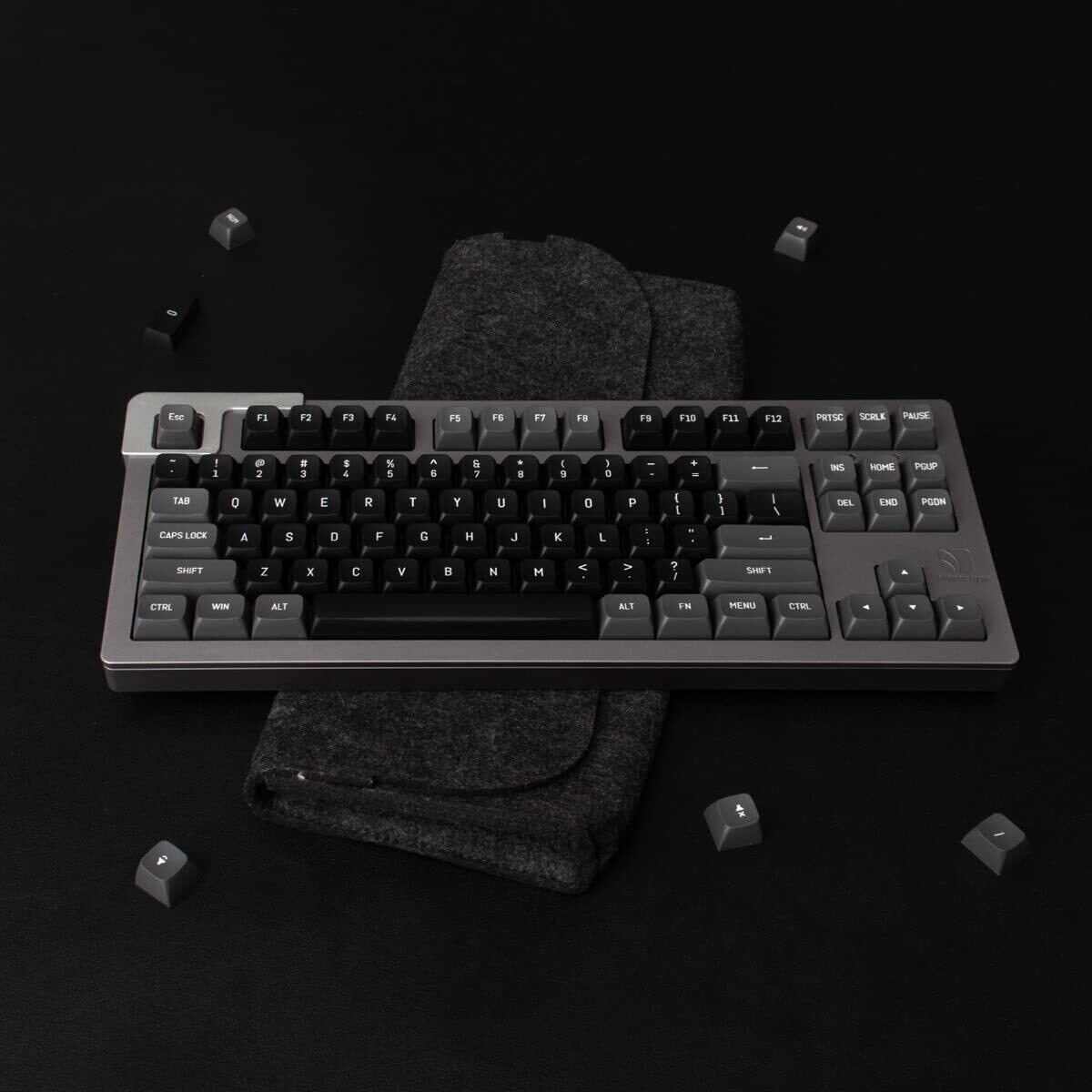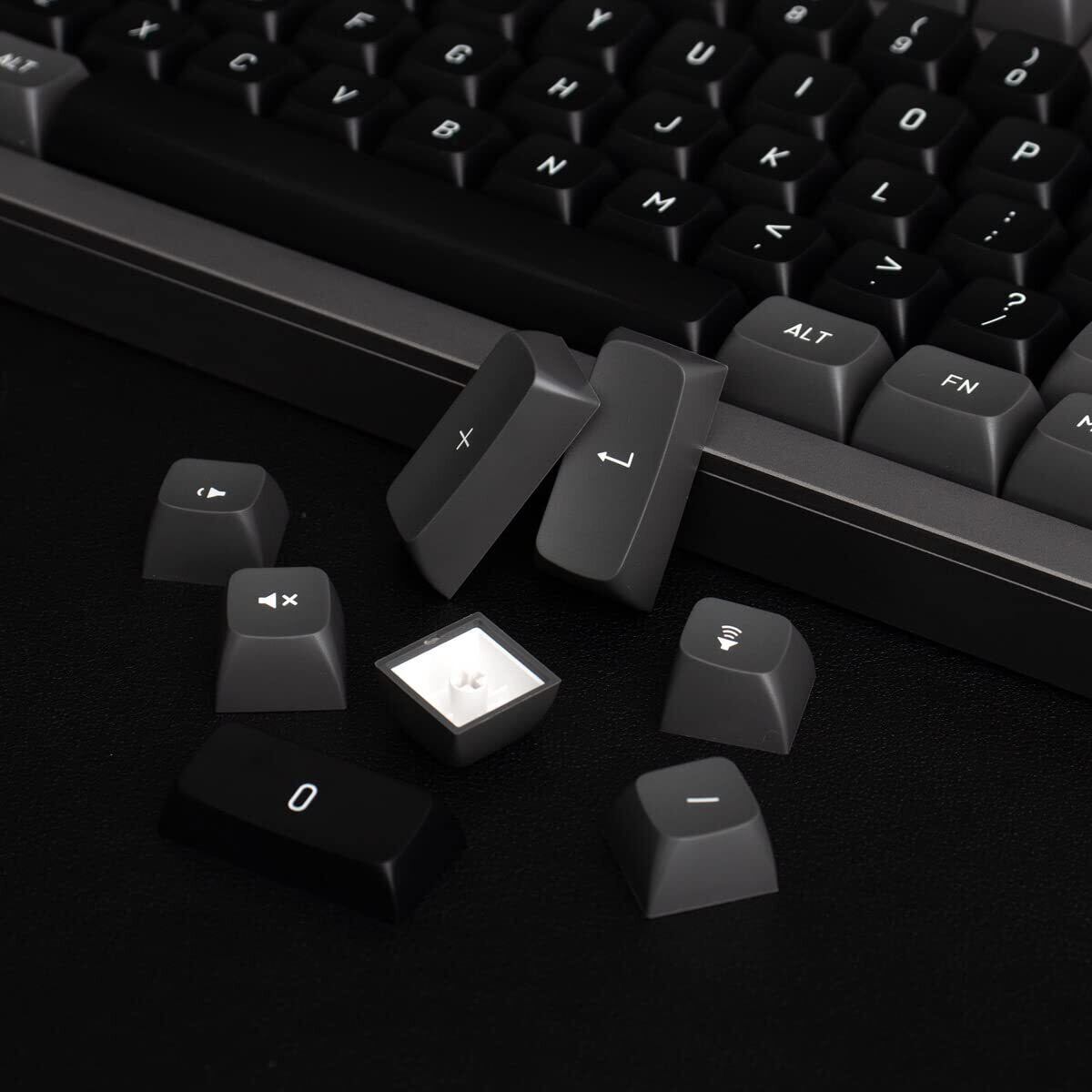 【デュアルカラーキーキャップ】これらのブラックグレーのキーキャップは2色の技術で作られているため、キーキャップの凡例は非常に明確で、フォントは美しく、色あせせず、耐久性があります。