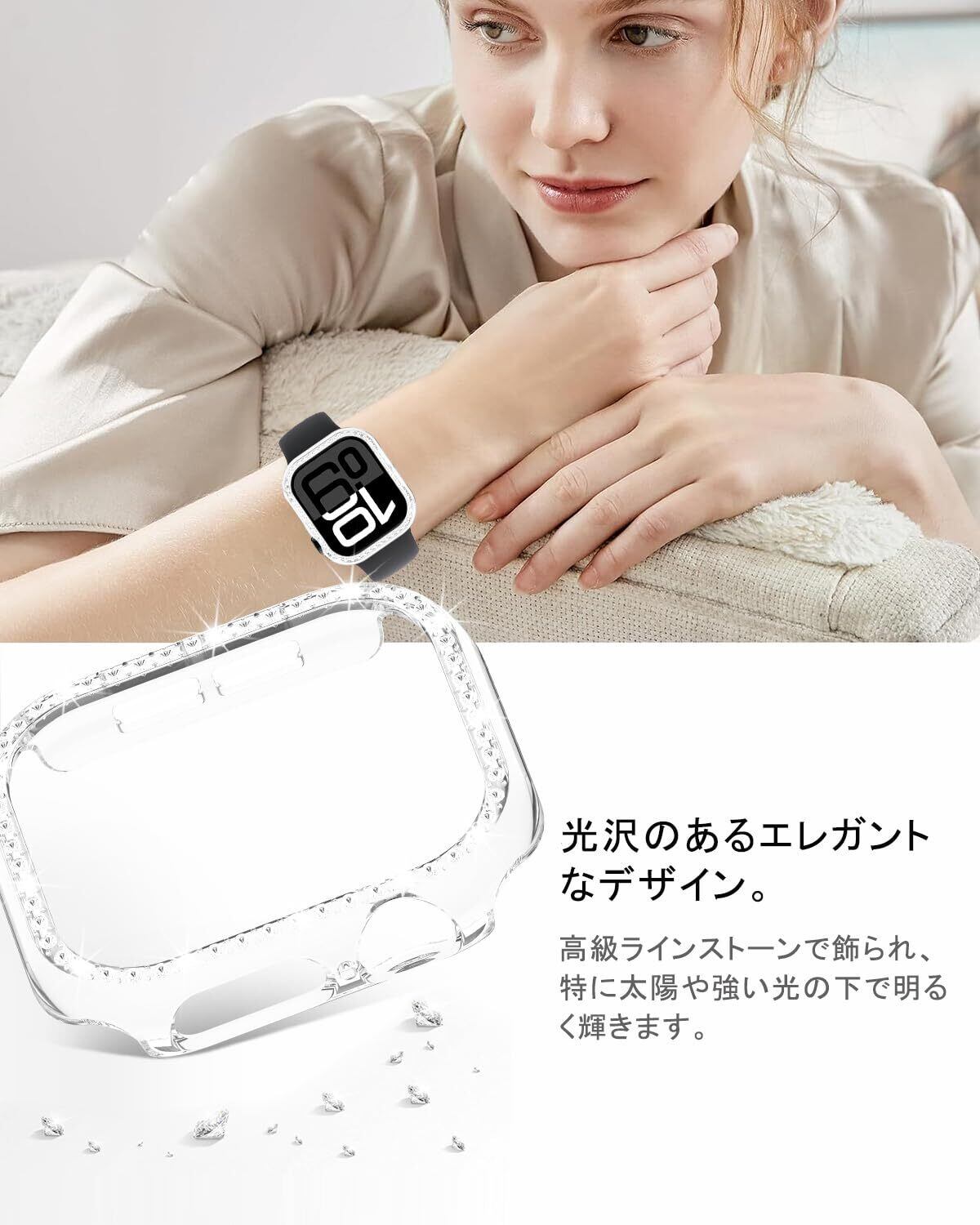Miimall for Apple Watch 10 46mm ケース ラインストーン付け キラキラ 超簿軽量 耐衝撃 装着簡単 アップルウォッチ10 46mm 対応 可愛い 傷防止 保護ケース Apple Watch Series 10 カバー 専用 46mm クリア