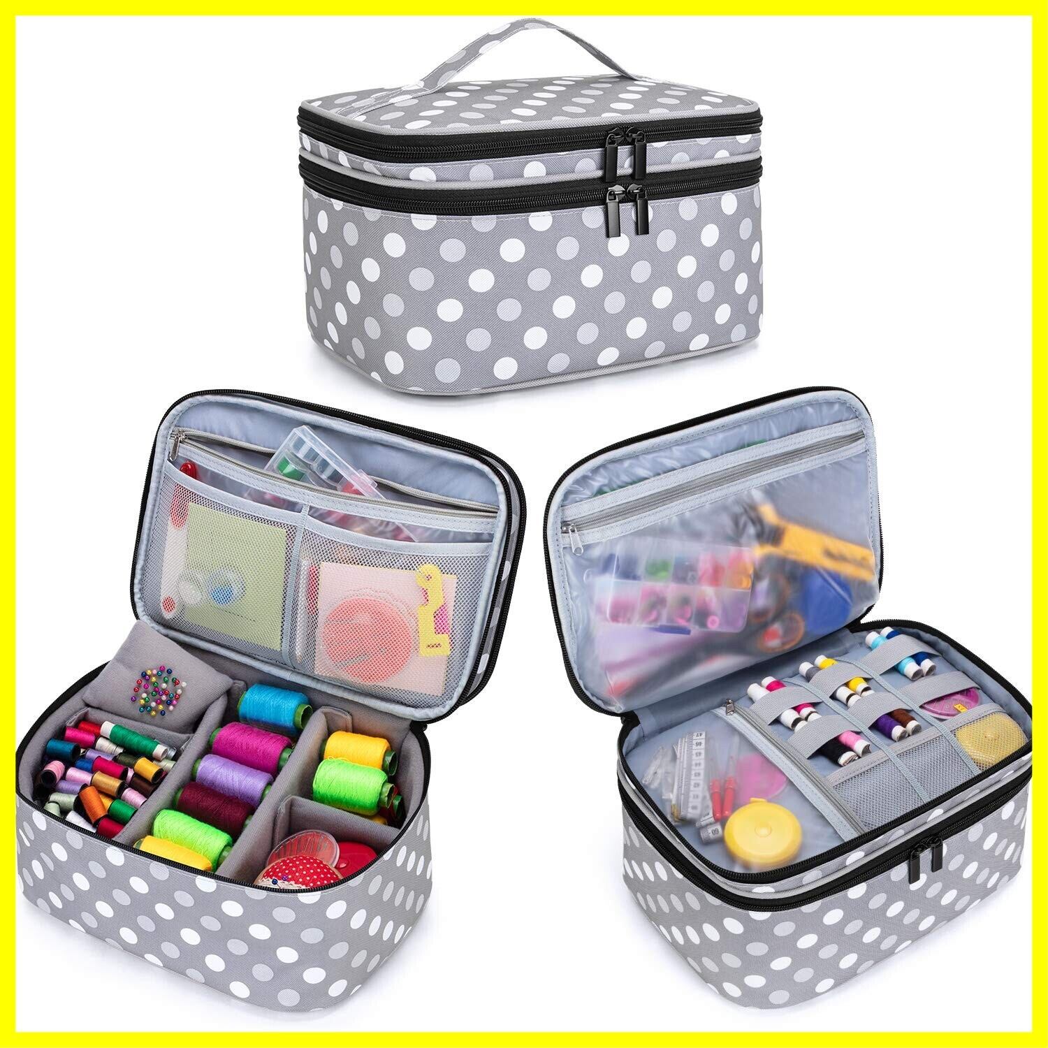 【機能】ソーイングに必要な道具を収納できる二層デザインです。小分けで、お裁縫道具を細かく収納することができます。