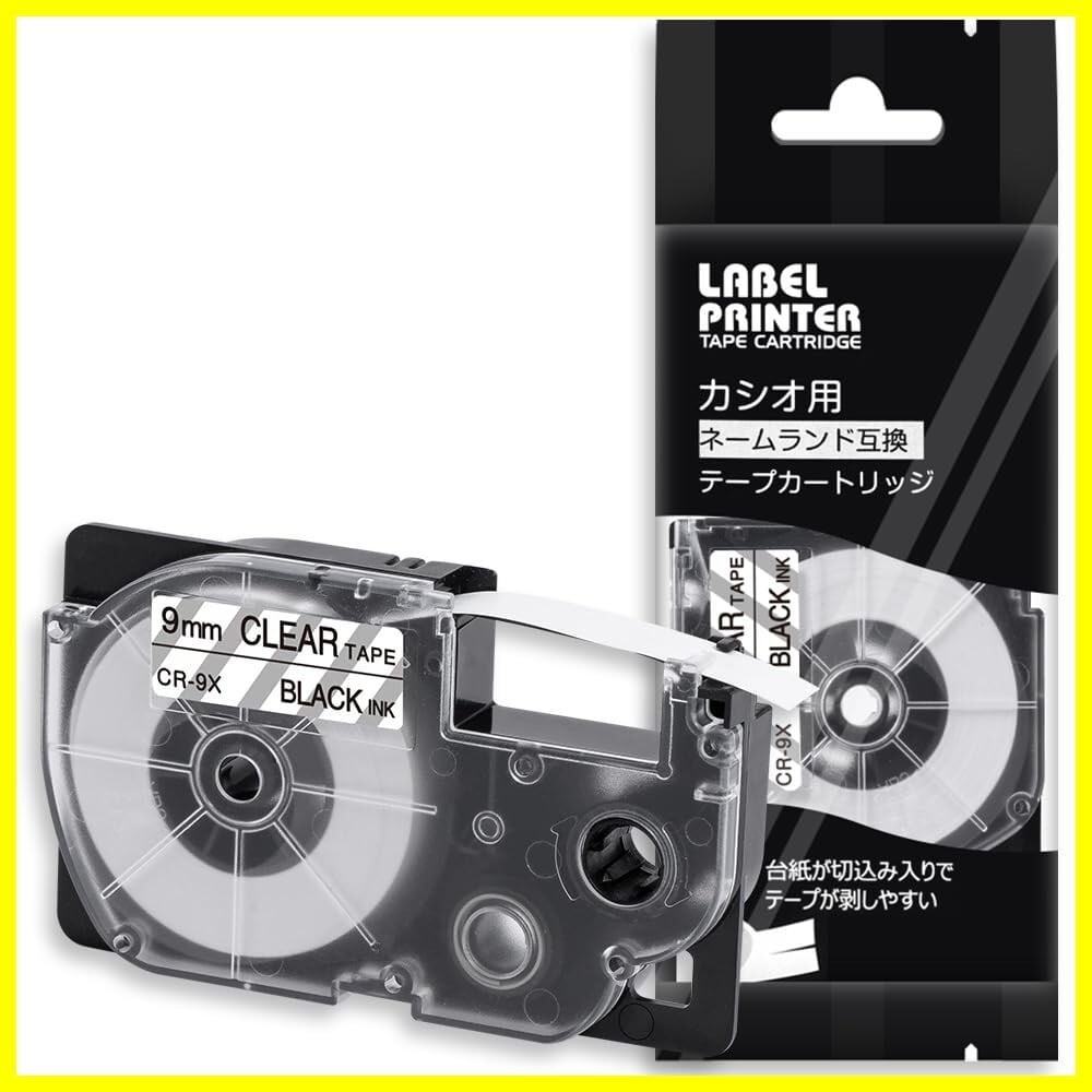 [ 含みます ]: ネームランド 9mm 透明地黒文字 1個。[ 互換型番 ]: 互換カシオ ネームランド テープ 透明 XR-9X