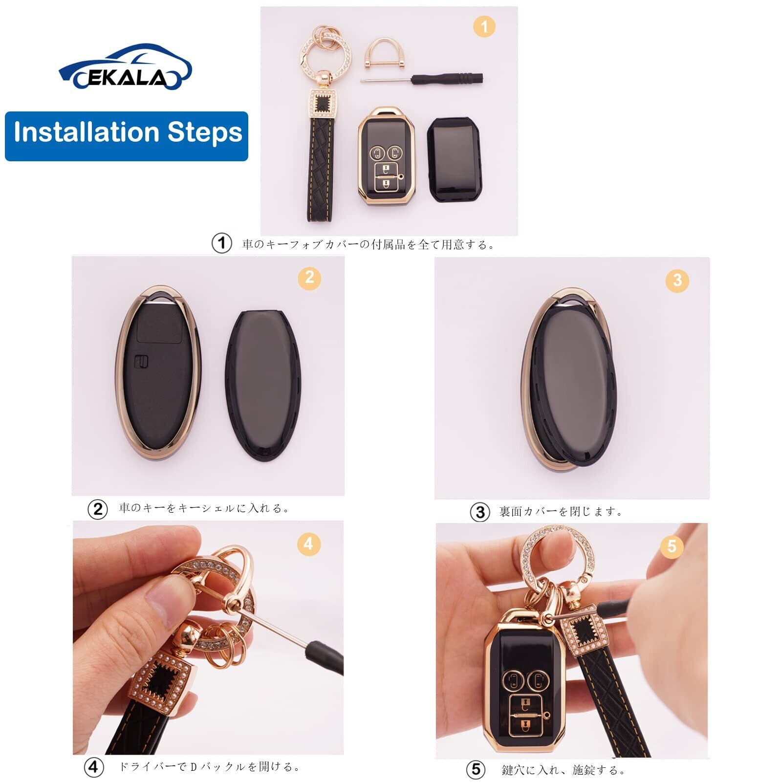 [EKALA] キーケース適合スズキ新型スペーシア キーカバー スペーシアカスタム ソリオ フレアワゴン スマートキーケースキーホルダー さらさらTPUで手触り快適