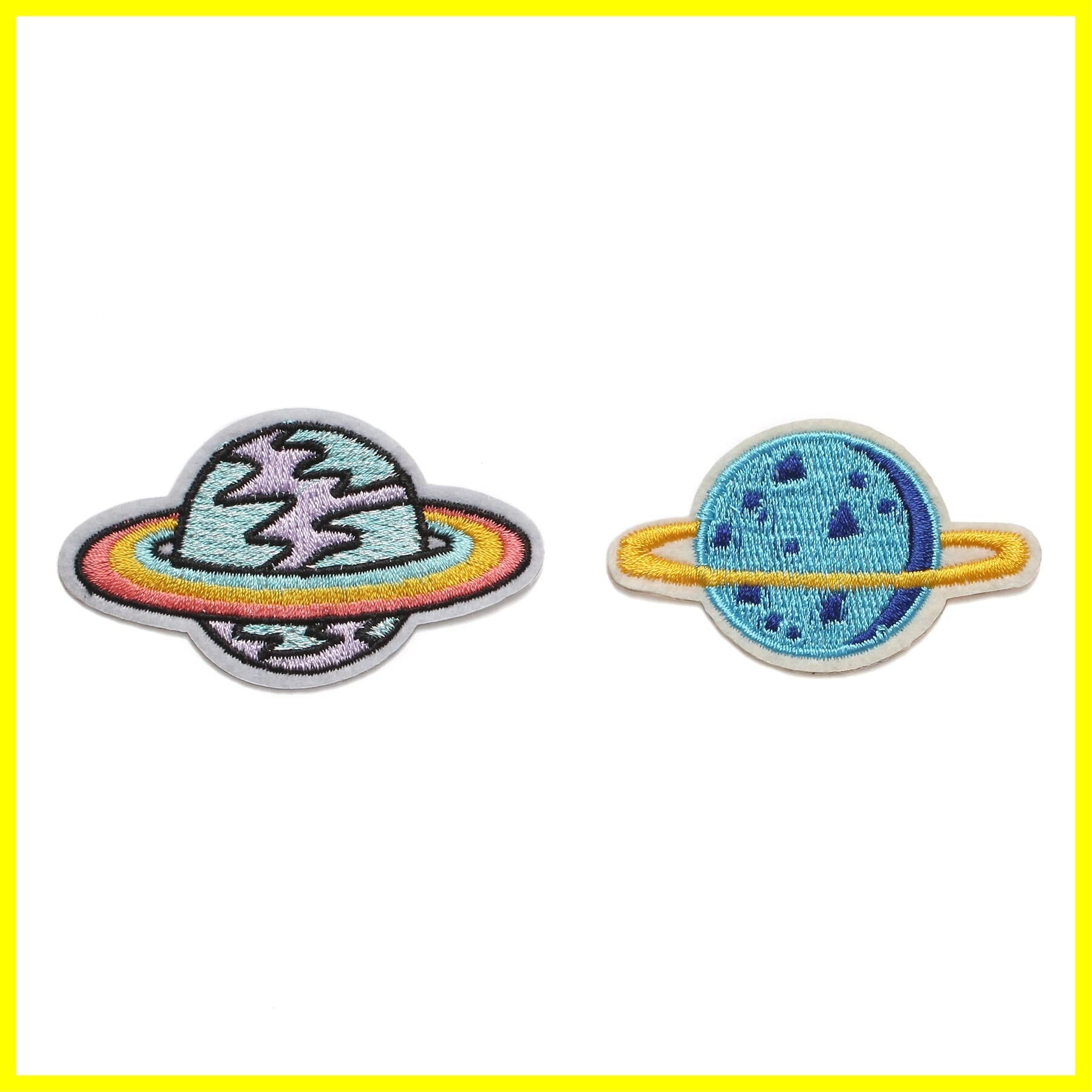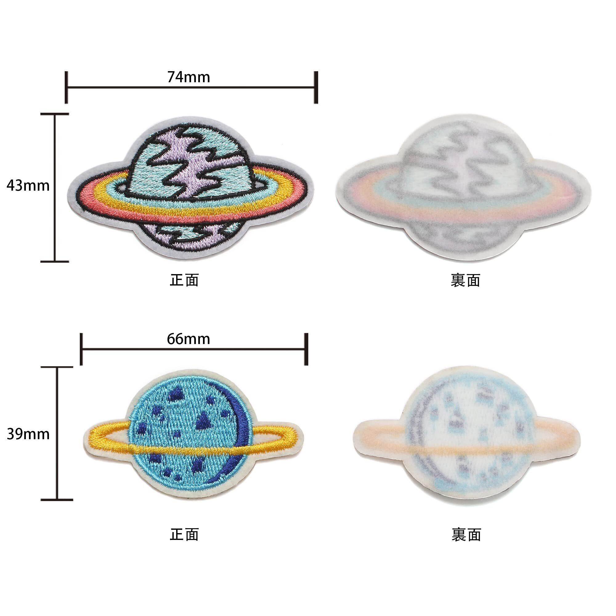 SSYSSY 刺绣徽章 ワッペン アイロン接着両用タイプ カートゥーン 宇宙 惑星 宇宙飛行士 衛星 火箭 2個入 手芸 DIY用品 (U003)