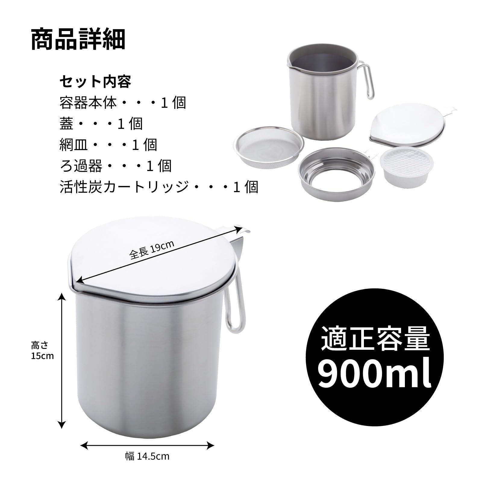 アーネスト 【日本製】 オイルポット 900ml ステンレス 液だれしにくい (For 油 900) + 活性炭カートリッジ (約10回分) 大手飲食店愛用ブランド A-77198