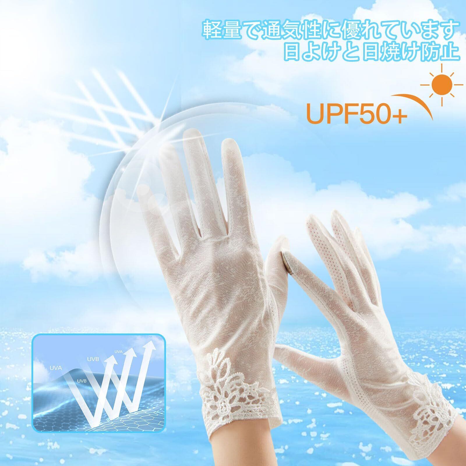 [Kingsie] 手袋 レース uvカット グローブ スマホ対応 滑り止め付き メッシュ 薄手 おしゃれ 日焼け止め 紫外線防止 手荒れ対策 UV手袋 自転車 運転 レディース 夏