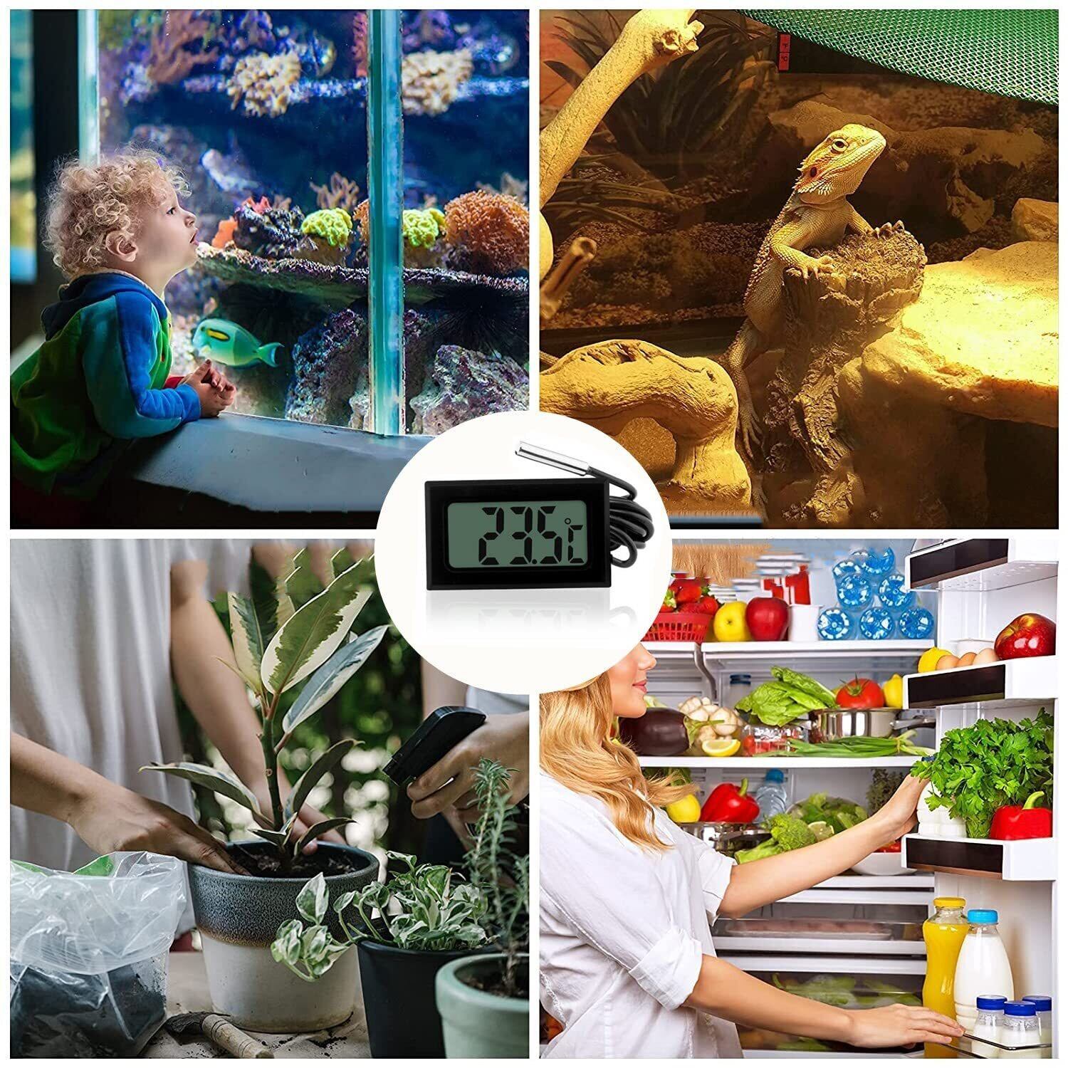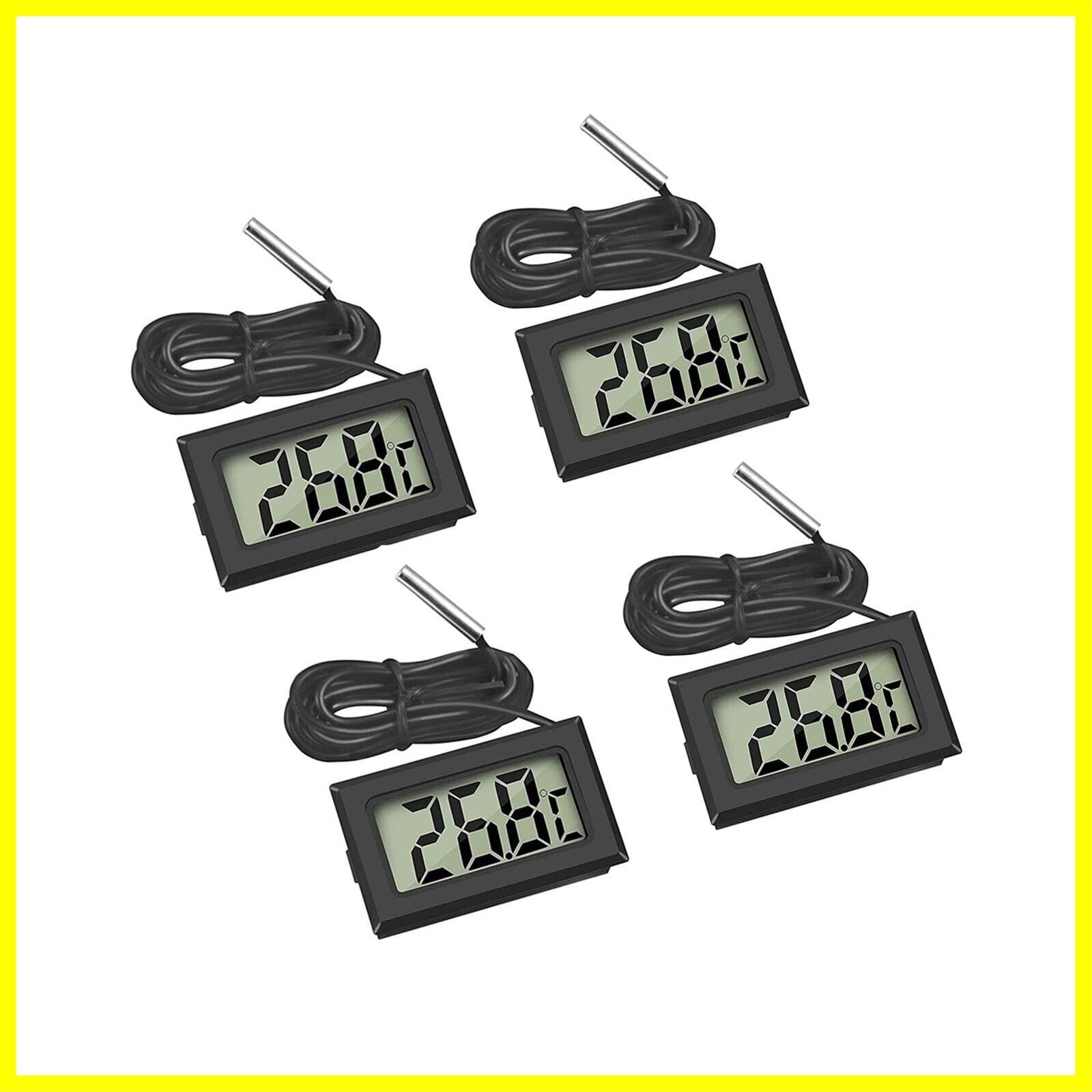 デジタルLCD温度計 温度計-50℃~110℃ プローブ付き 爬虫類テラリウム魚タンク冷蔵庫用 水槽 水温管理 水族館温度計 (ブラック 4個セット)