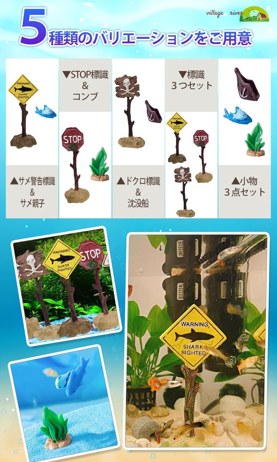 【villageriver】水槽 オブジェ オーナメント 置物 飾り アクセサリー インテリア アクアリウム (2, STOP標識&こんぶ)