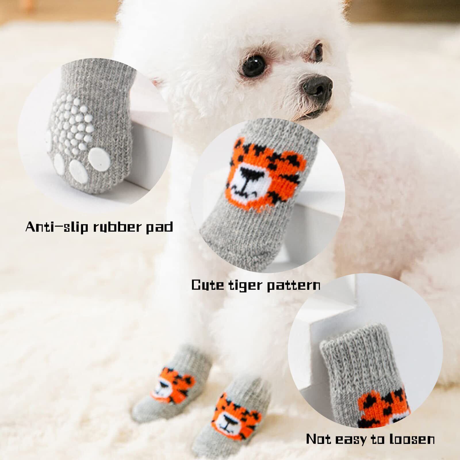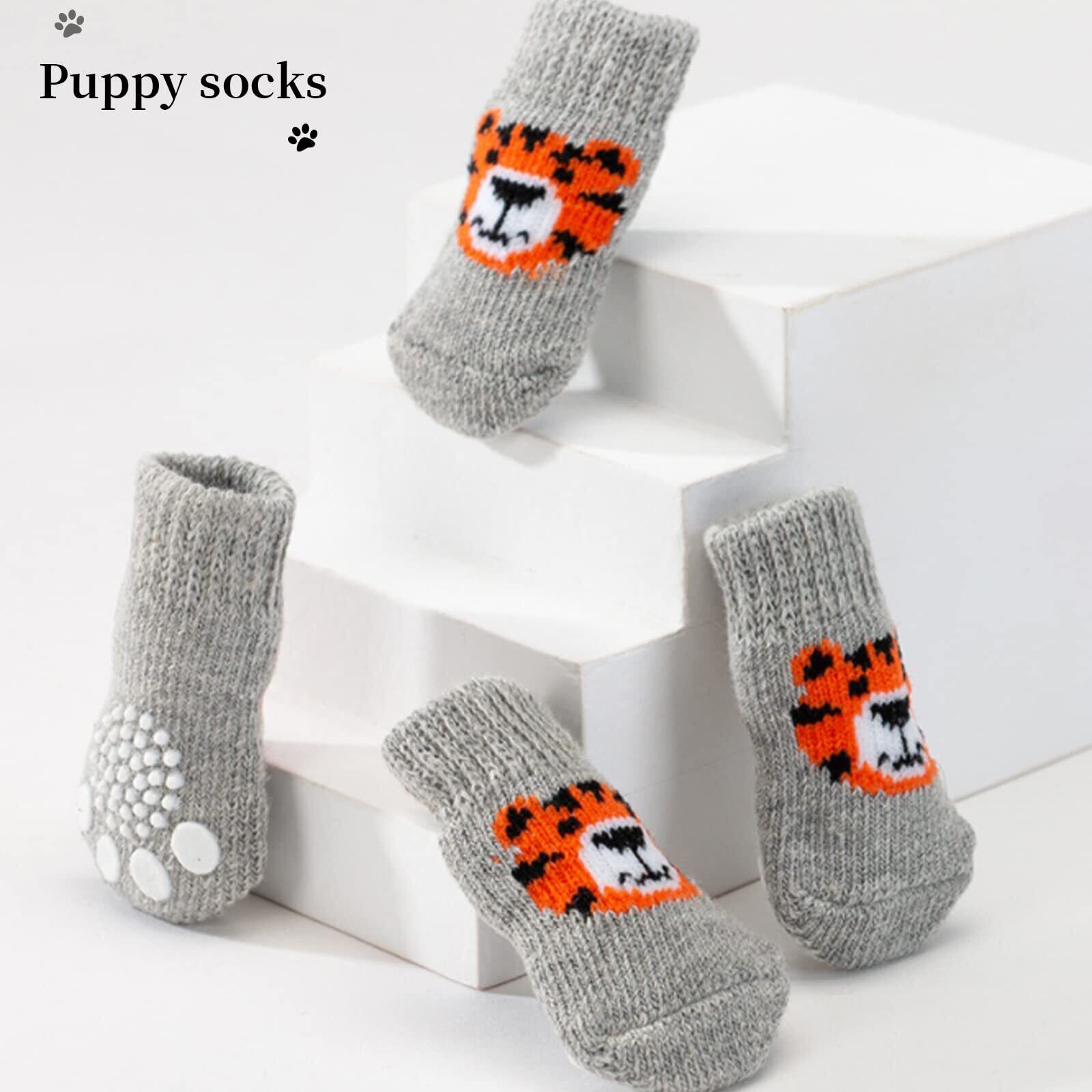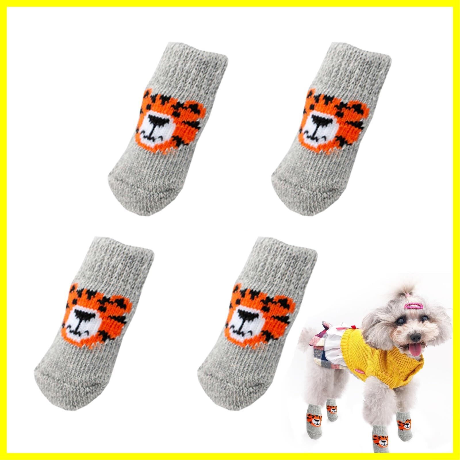 犬用靴下 滑り止め 4個セット 可愛い トラ 犬用 ソックス 柔らかい ペット 靴下 肉球保護 防寒 舐め防止 小型犬 中型犬 室内 室外 グレー (M)
