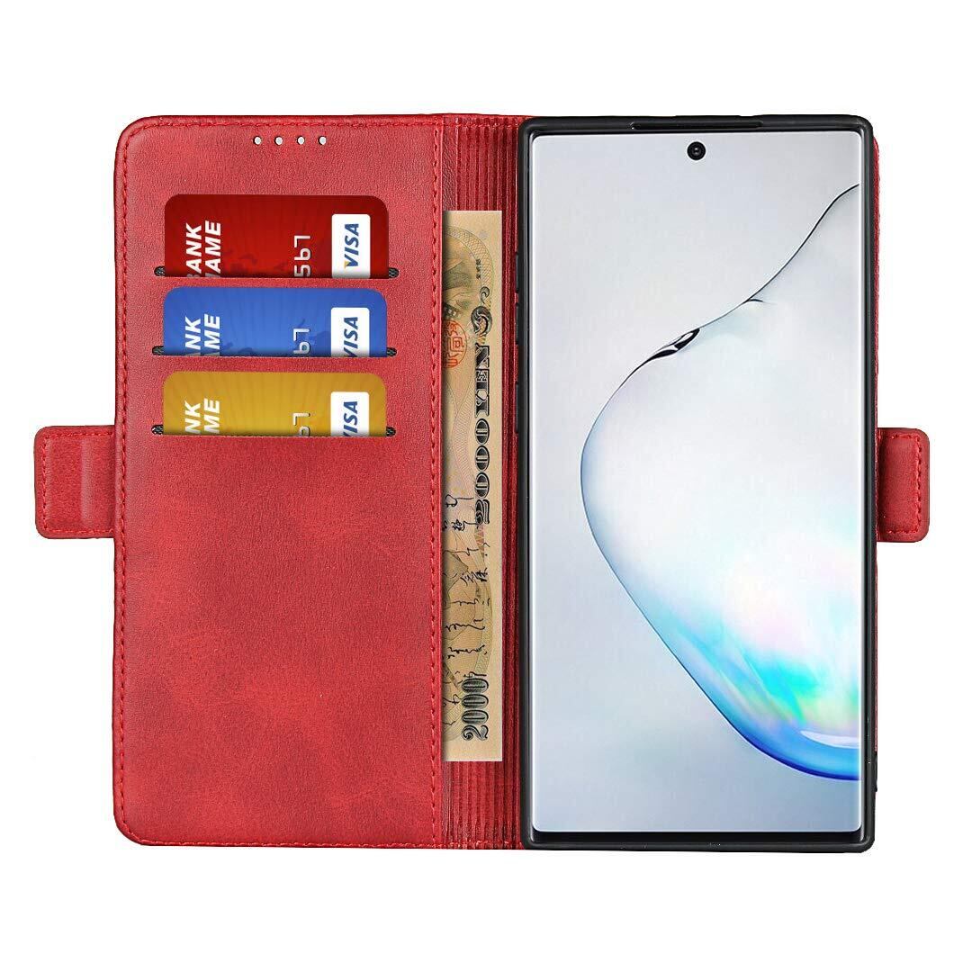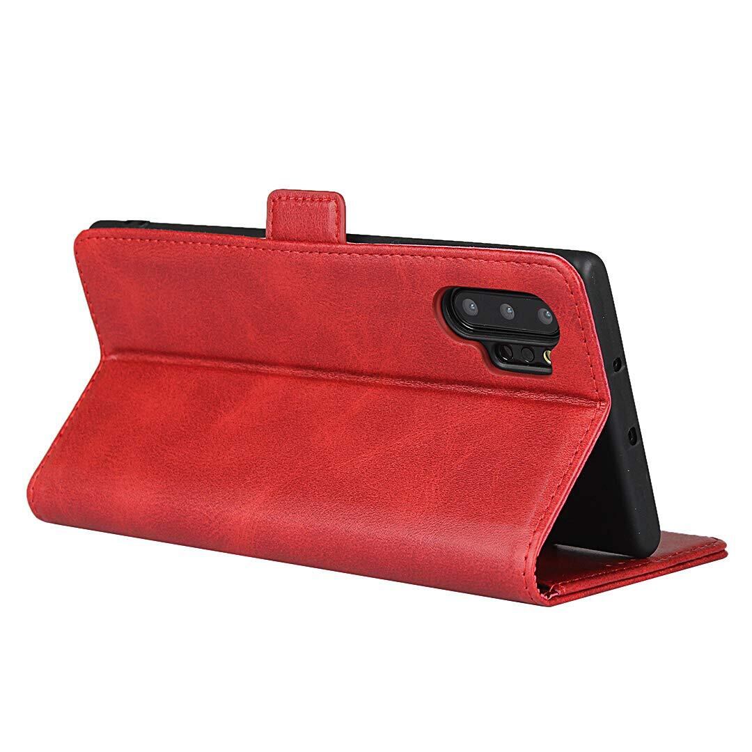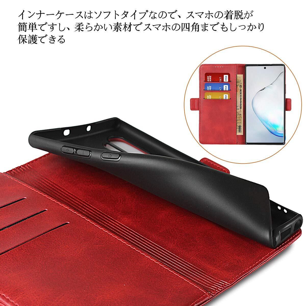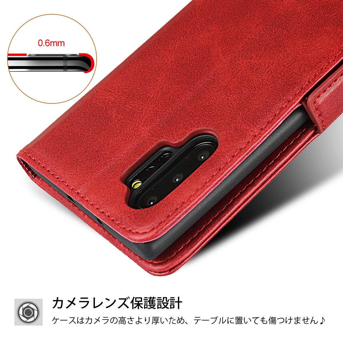 Galaxy Note10 plus ケース SCV45 au/SC-01M docomo/SIMフリー 対応 ケース ギャラクシー Note 10+ ケース Note 10 plus ケース SC01M サムスン Note10+ ケース カバー 手帳 適用 内蔵マグネット 留め具 携帯カバー カード入れ スタンド機能 落ち着いた色 レトロ レッド