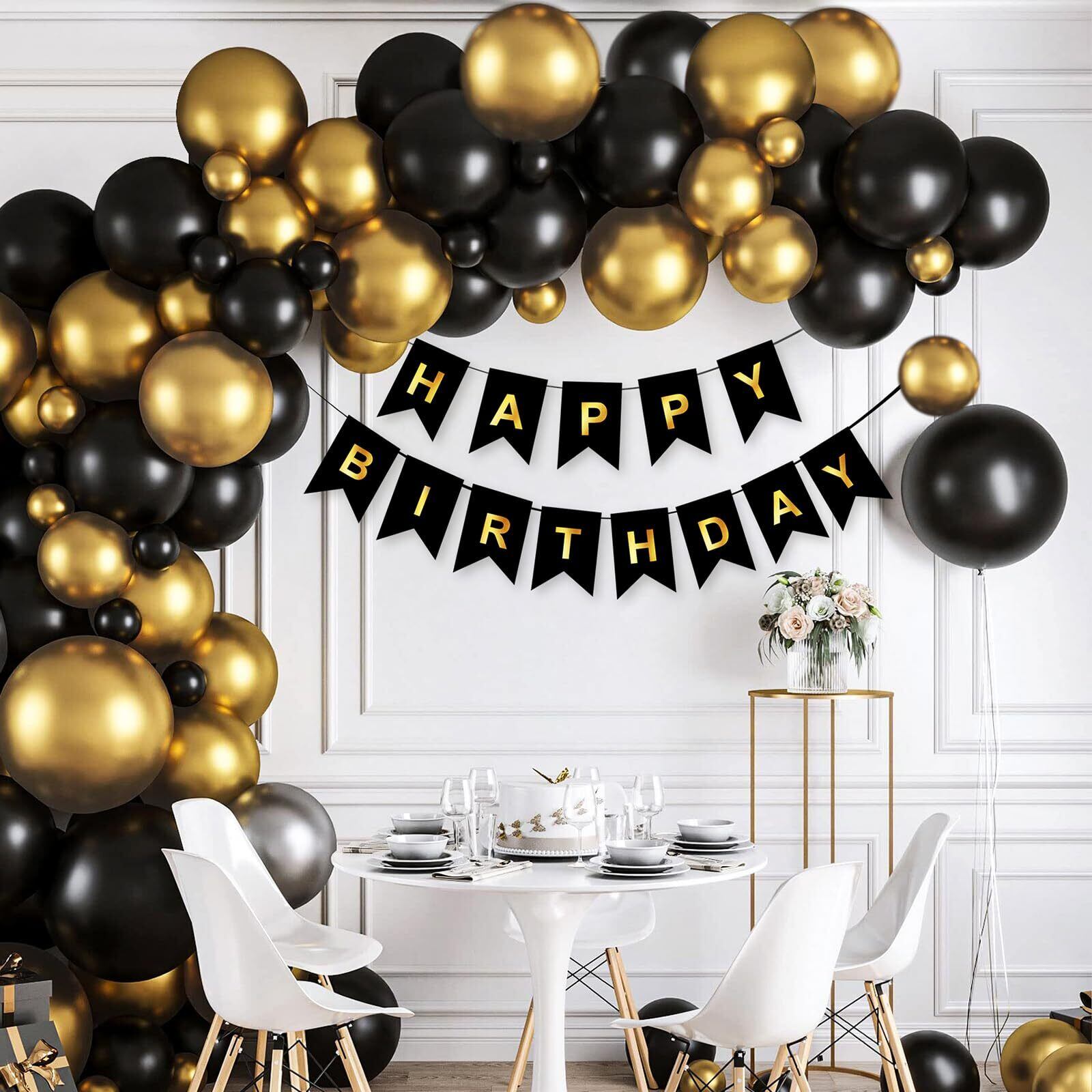 風船 誕生日 飾り付け 黒金 100個風船セットHAPPY BIRTHDAY 結婚式記念日お祝い バルーン 誕生日飾り 感謝祭 パーティー 卒業式 結婚式男女兼用