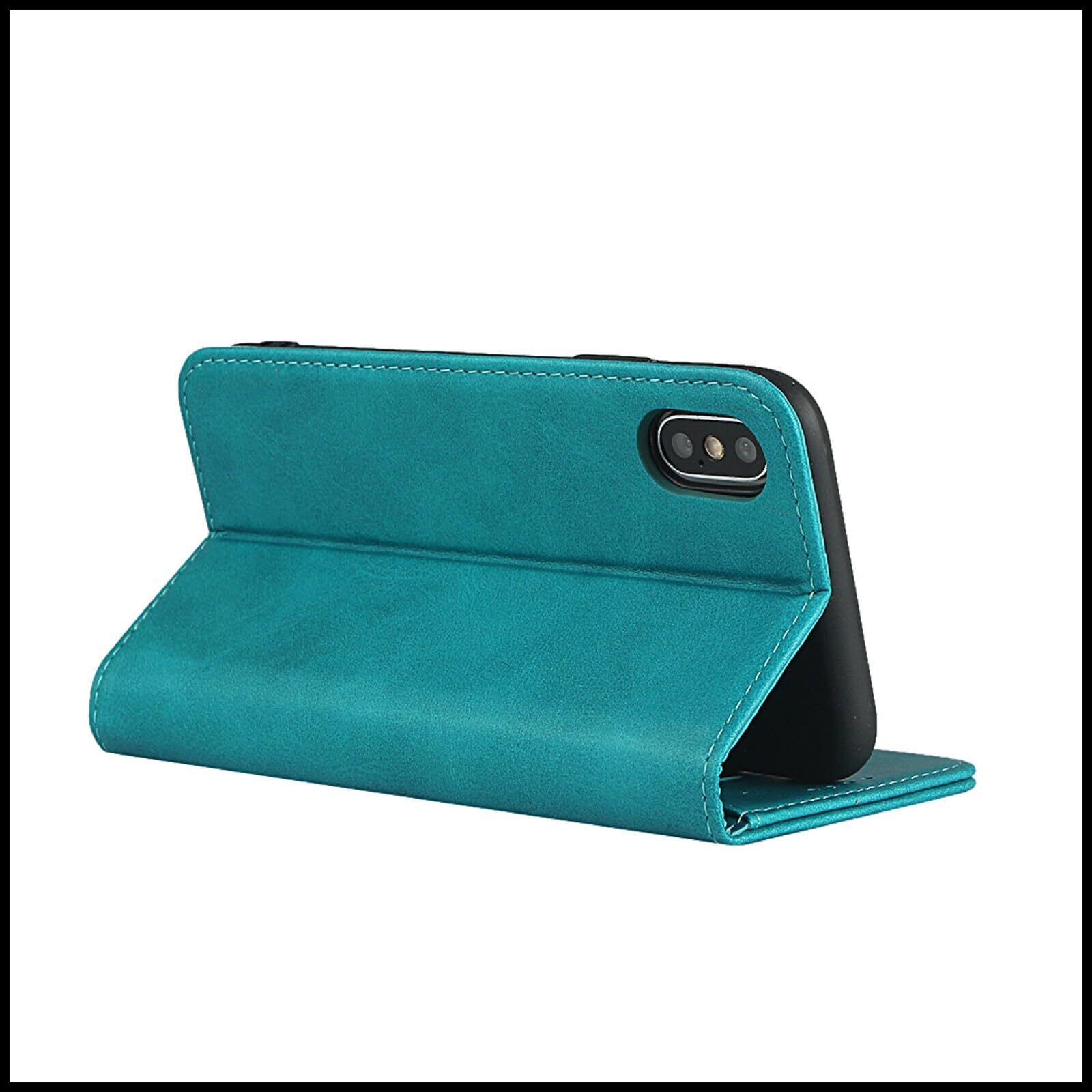 【iPhone X/Xs通用ケース手帳型】iPhoneXケース手帳型アイフォンXs 5.8インチFROLANスマホケース iPhone10レザー携帯カバー マグネット式 iPhone10sカード収納 軽量 汗や指紋防止 耐衝撃 スタンド機能 着脱しやすい (ターコイズ)