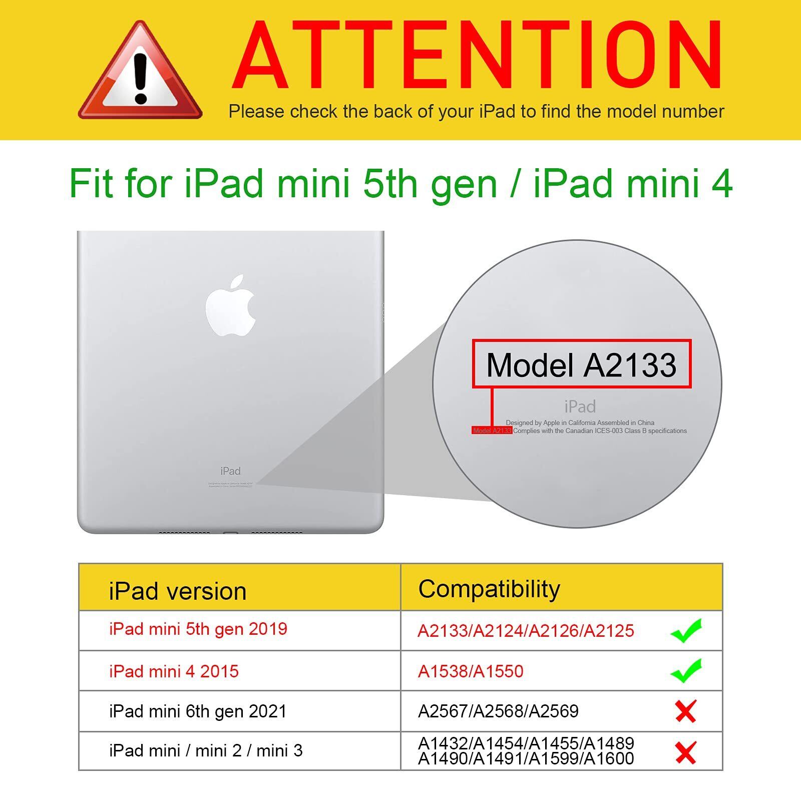 【対応機種】 iPad Mini 5 (第5世代) 7.9インチ 2019(モデル番号:A2133/A2124/A2126/A2125)、iPad mini 4 2015 (モデル番号:A1538/A1550) 専用スマートケース、カバー。 (ご注意:iPadの他のモデルには対応していません、ご注文の際に、お手元機種の背面にあるモデル番号を確認をお願い致します。)