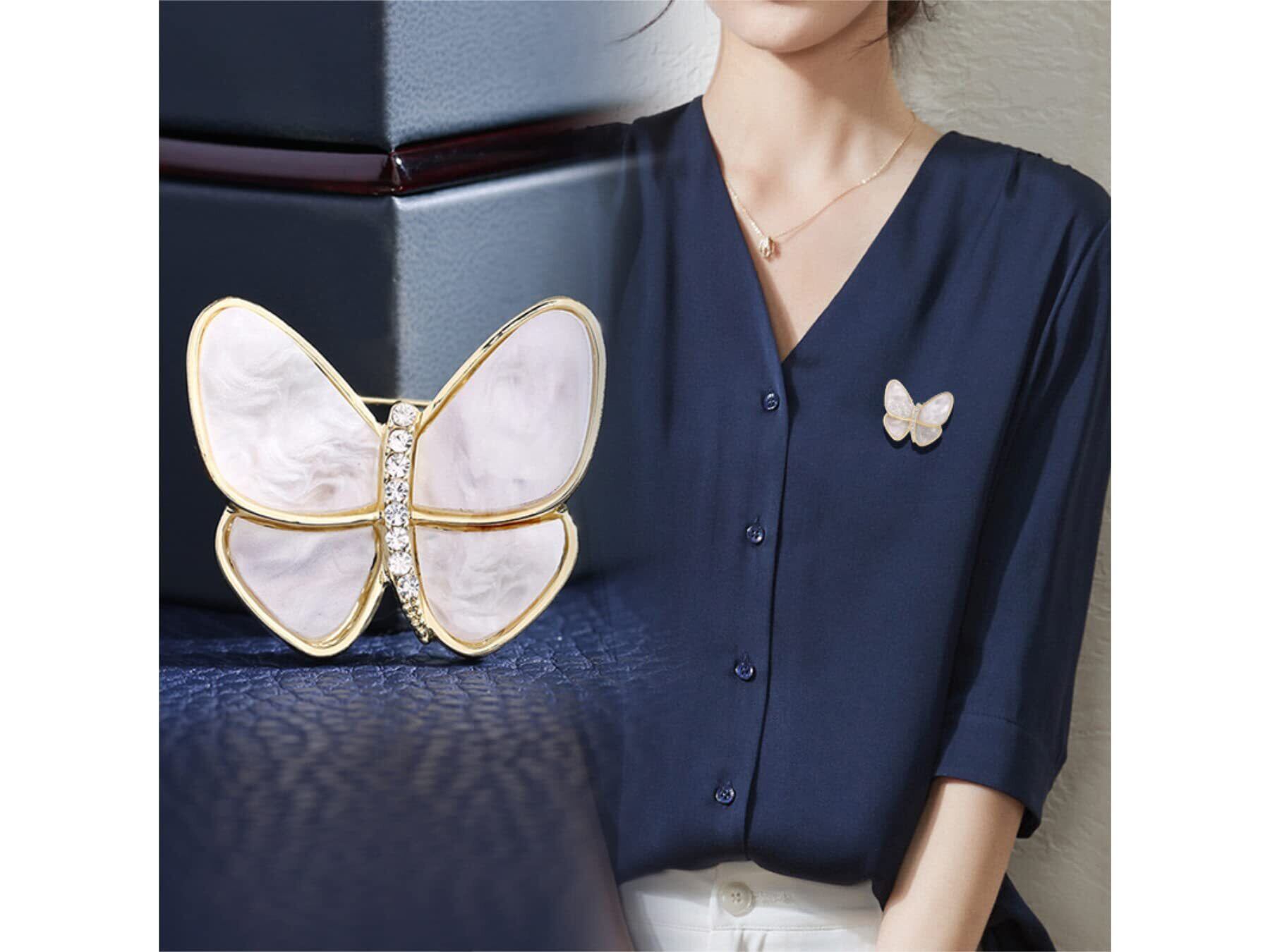 [Yallaeen] 新 蝶形 ブローチ ハイ-エンド 洗練 ブローチ アクセサリー さまざまな衣装で着用できます ホワイト