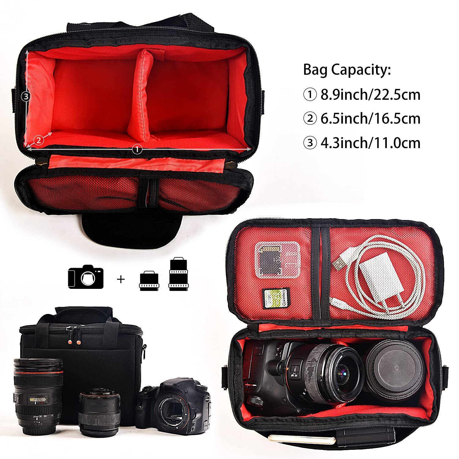 【耐久性に優れた素材&プレゼントにもお勧め】このカメラバッグは、防水性のあるナイロン生地を使用し、高品質の金属製ファスナーとショルダーストラップのバックルを備えている。また、レインカバーが付属しているので、雨の中でもカメラをしっかりと保護でき、長期間の使用が可能です。誕生日や特別な祝日に、撮影に情熱を注ぐ友人や家族、同僚に贈るのに最適なカメラバッグです。カメラバッグは軽量で、仕事、外出、旅行、ビジネス、日常の通勤などに適している。 このカメラバッグは、カメラだけを収納するのに適しているだけでなく、他の部品を保管するのにも適している。 ただし、購入前にサイズを確認してください。