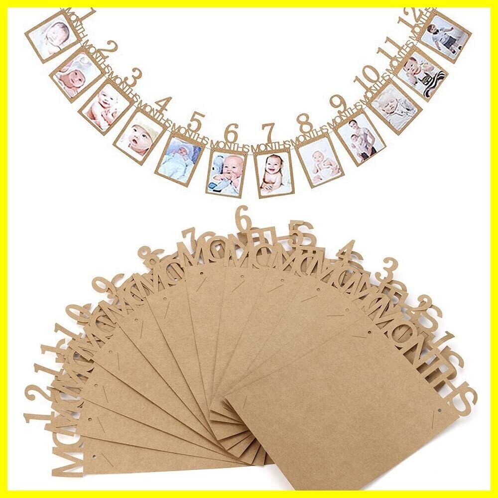 誕生日 写真 ガーランド フォトフレーム 飾り付け 1歳 12ヶ月 バースディ パーティー お祝い 装飾 壁掛け 写真フレーム 写真立て 記念日 赤ちゃん 結婚 ひも付き (茶色)