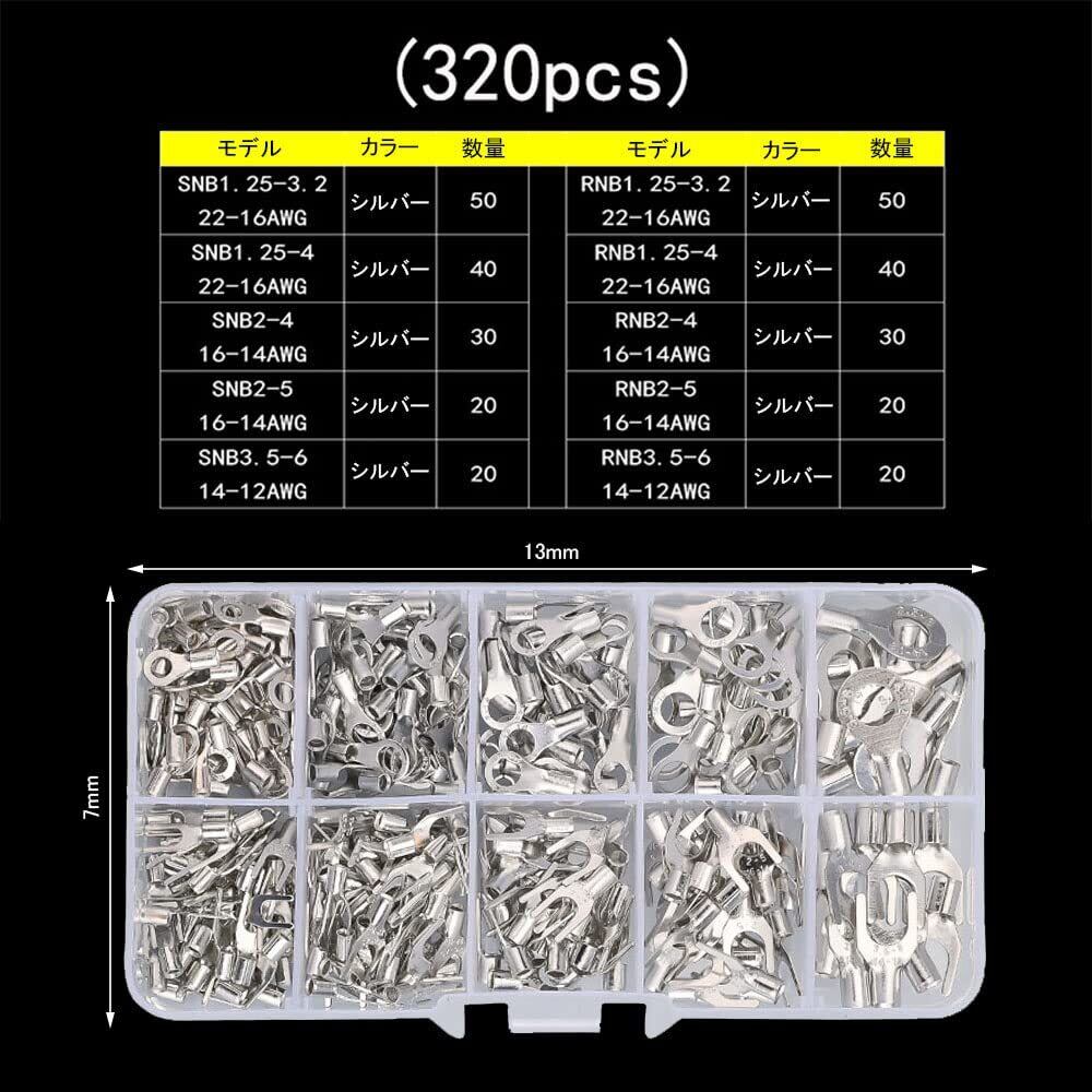 1.【仕様】個数:320個入れ端子セット、 表面材:錫メッキ面、 カラー:シルバー、 形状:O型、U型
