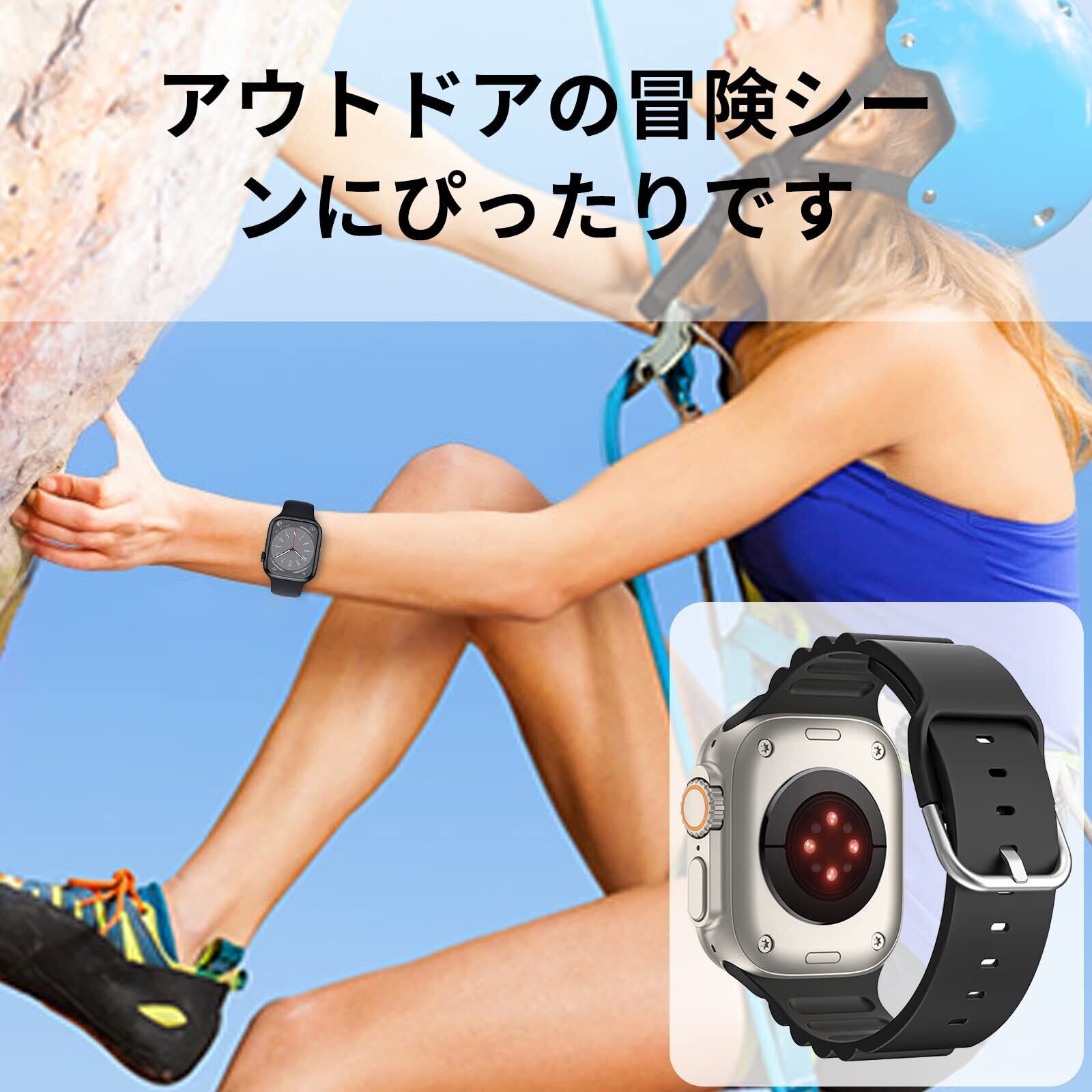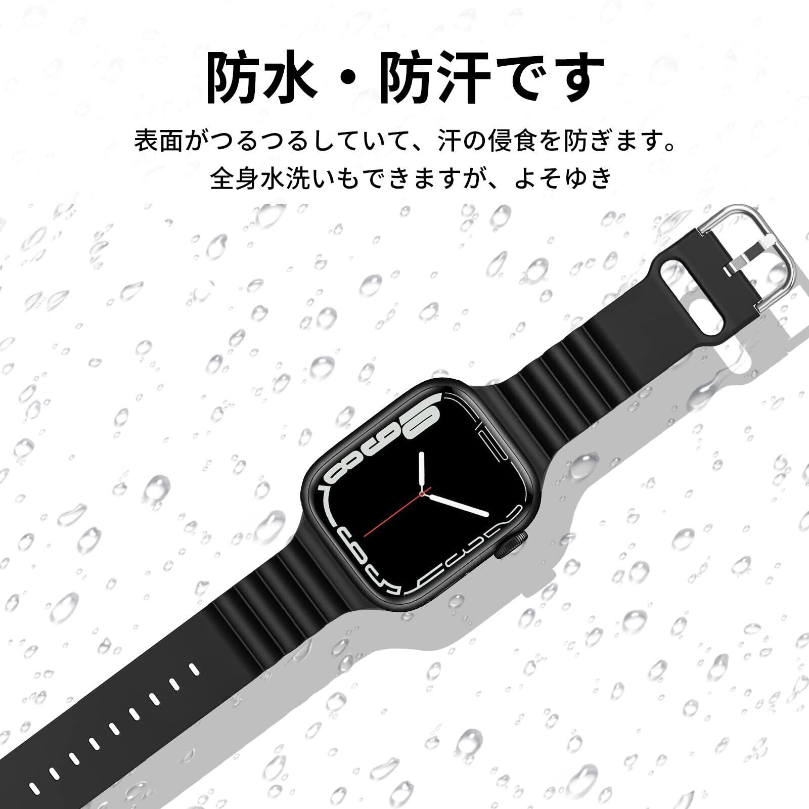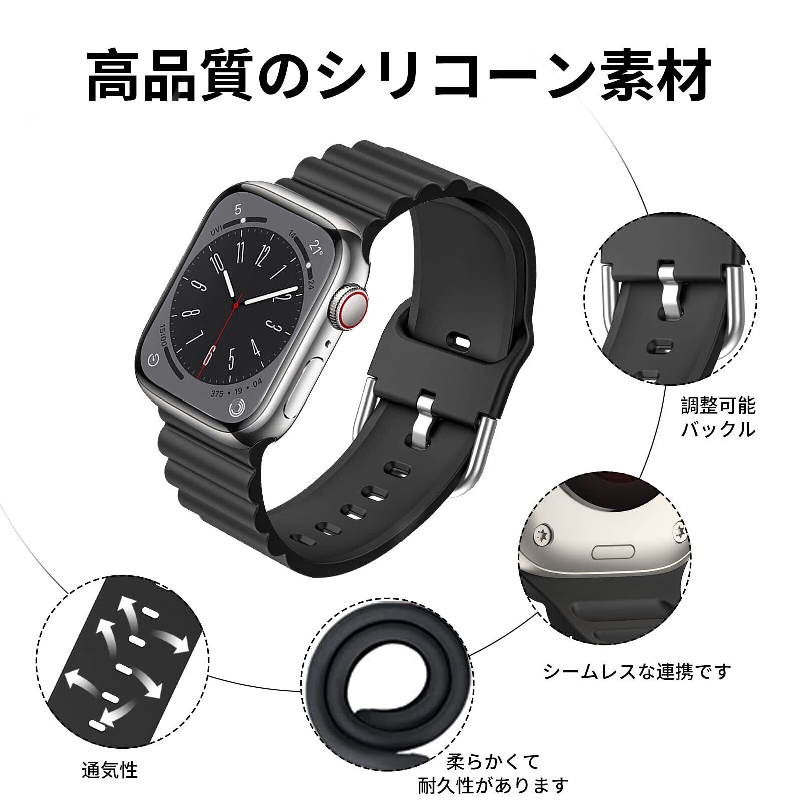 CABOBE 対応 コンパチブル アップルウォッチ バンド 49mm 45mm 44mm 42mm 41mm 40mm 38mm Apple Watch バンド アップルウォッチ バンド Apple Watch Series 9/8/7/SE2/SE/6/5/4/3/2/1 Apple Watch Ultra2/Ultra に対応 シリコン製 スポーツバンド 交換ベルト 柔らかい 通気 (41/40/38mm , ブラック)