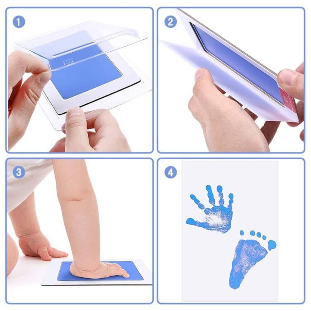【使用簡単】軽く押すだけで赤ちゃんの手足の跡をプリントに取れます。プリントが完成したらよく乾燥させます。