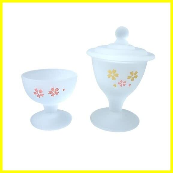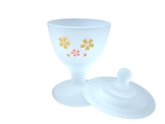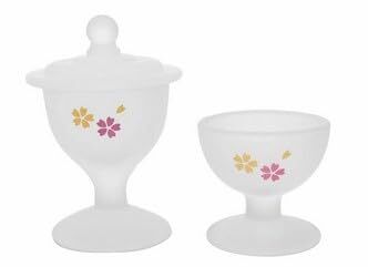 ガラス仏茶器セット(ご飯・水入れ)桜柄 (くもり白)