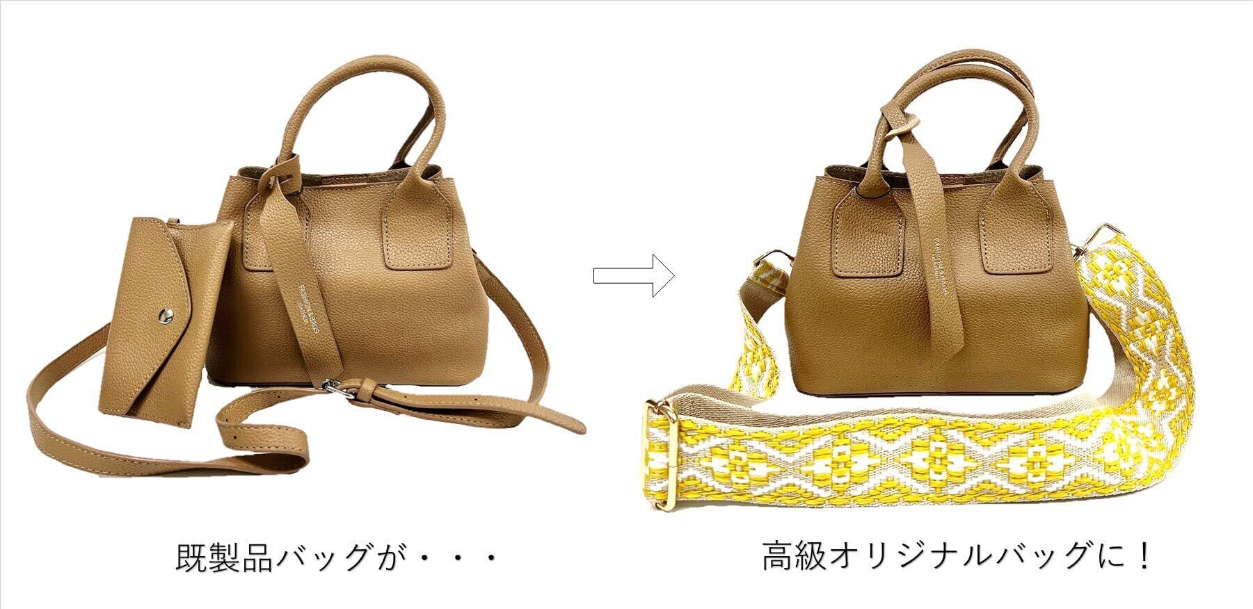 お持ちのバッグに付け替えるだけで高級感アップして高見え映えるバッグストラップ。 あなた好みのオリジナルデザインバッグに変えれます。 ファッションコーディネートに合わせたカラー、柄に取り換えておしゃれ度アップ! まとめ買いもできるお値ごろ価格にてご案内いたします。