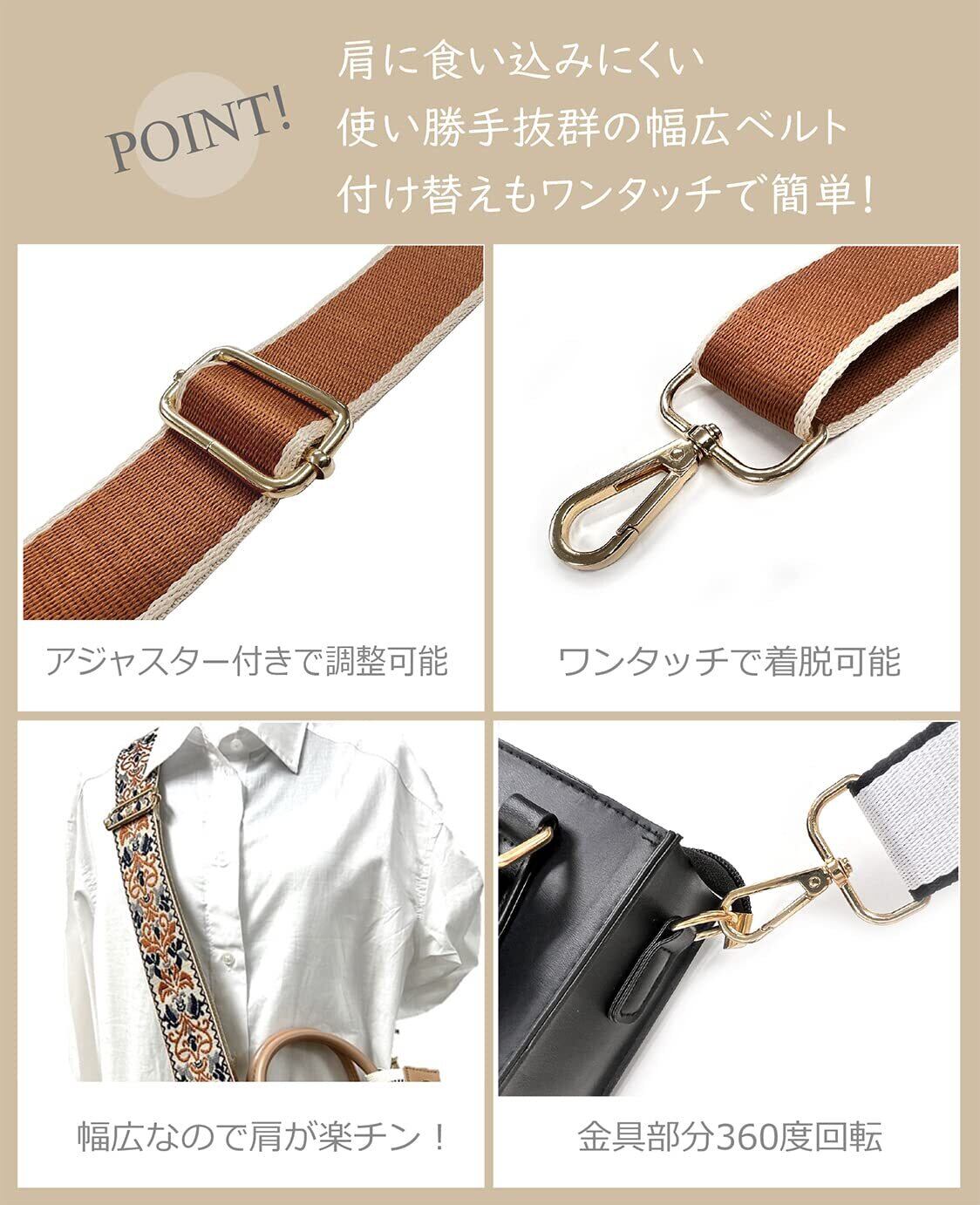 [Estimation エスティメイション] ショルダーストラップ バッグ ショルダー ベルト 肩掛け 幅広 太め ワイド 単品 付け替え 交換用 肩紐 柄 刺繍 BAG STRAP SHOLDER