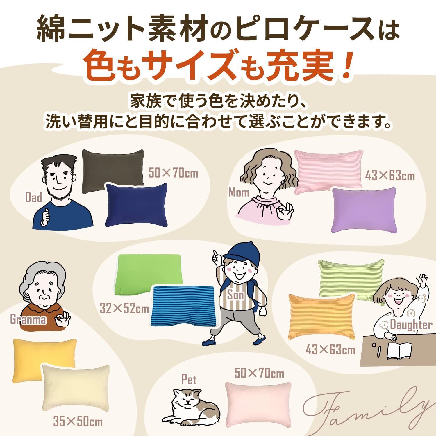 Tシャツのようなやわらかい肌触りのニット生地を使用したピロケース。吸水性の良い綿100%の生地でオールシーズン使用可能です。