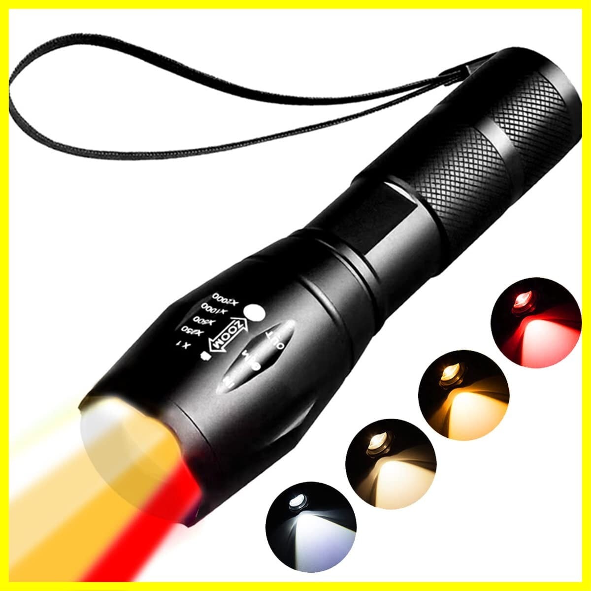YZYOE赤ランプ懐中電灯:赤ランプ懐中電灯は夜間活動のために設計されている。 人間の目は赤い光の範囲に最も敏感で、しかし動物は赤色LED懐中電灯に驚くことはありません、 だからこの赤い光は暗闇の中で動物を見つけるのに非常に役立ちます。 豚やオオカミ、キツネのように赤い光にはあまり敏感ではありませんが、 だから邪魔しないで見つけることができます。 黄灯と琥珀灯:柔らかい光はまぶしくなく、長時間の観察に適しています。 写真補光灯としても使用でき、非常に効果的です。