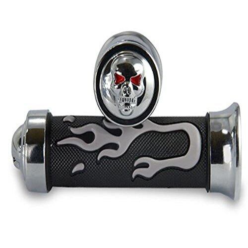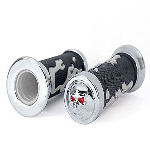 Szmsmy ガイコツ バイク グリップ 25mm メッキ 左右セット スカル バーエンド