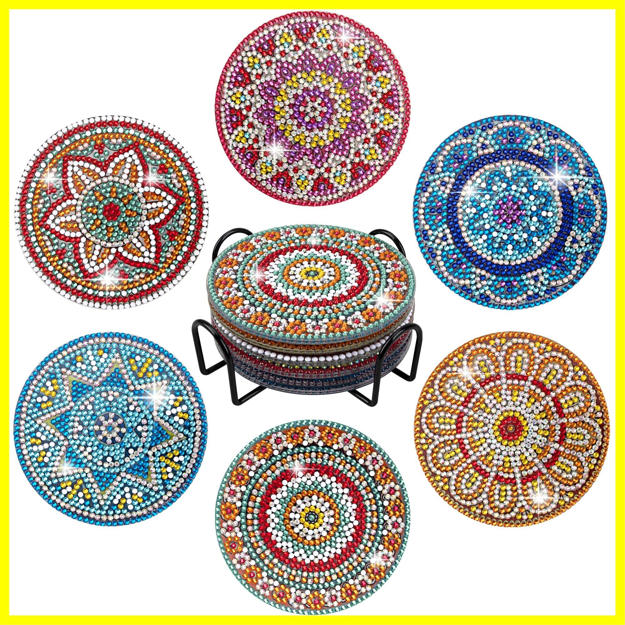 [TEMLUM] ダイヤモンドアート コースター キット ダイアモンドビーズ絵画キット DIY・手作り 5D モザイクアート ダイヤモンド塗装 6個入 初心者 装飾 ギフト (曼荼羅)