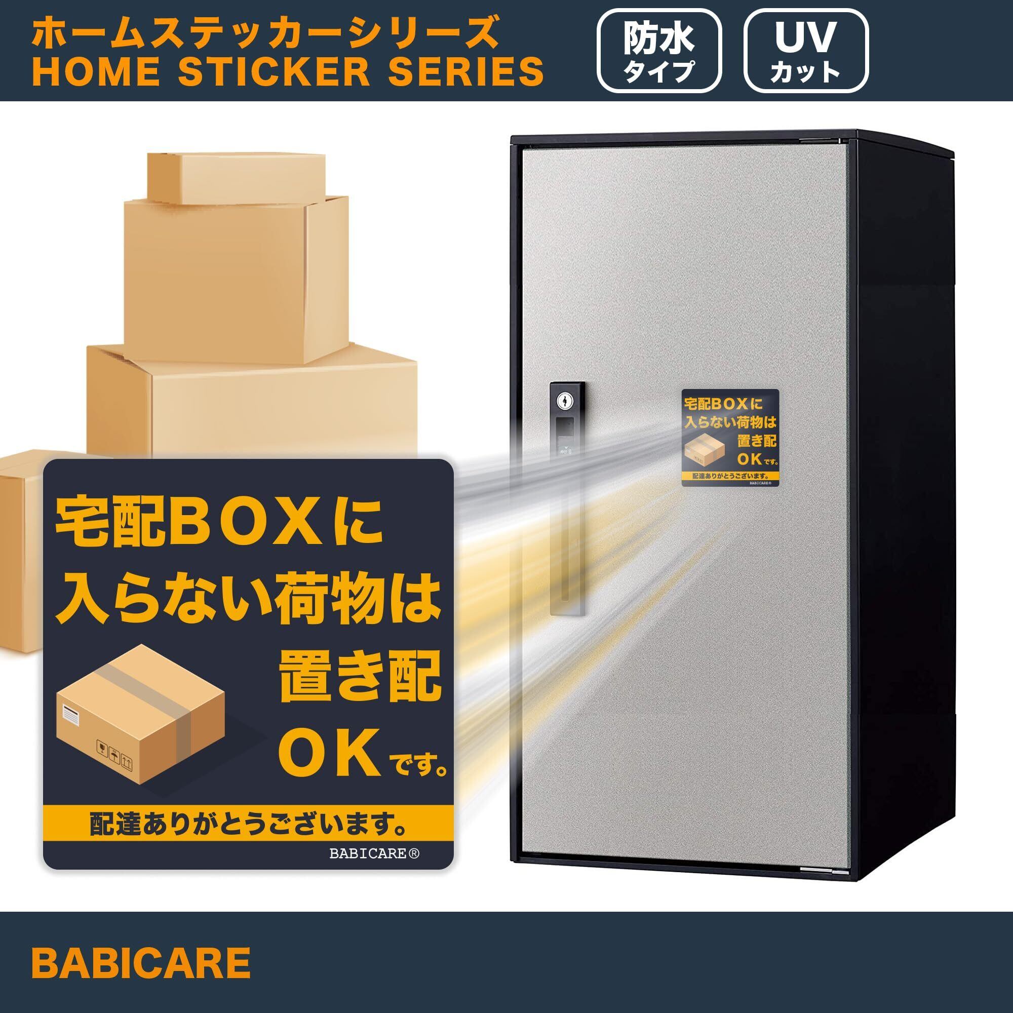 【BABICARE】 宅配BOXに 入らない荷物は置き配 OKです ステッカー PET製 光沢/高耐候/防水/耐光/UVカット 80X80mm (ネイビーブルー)