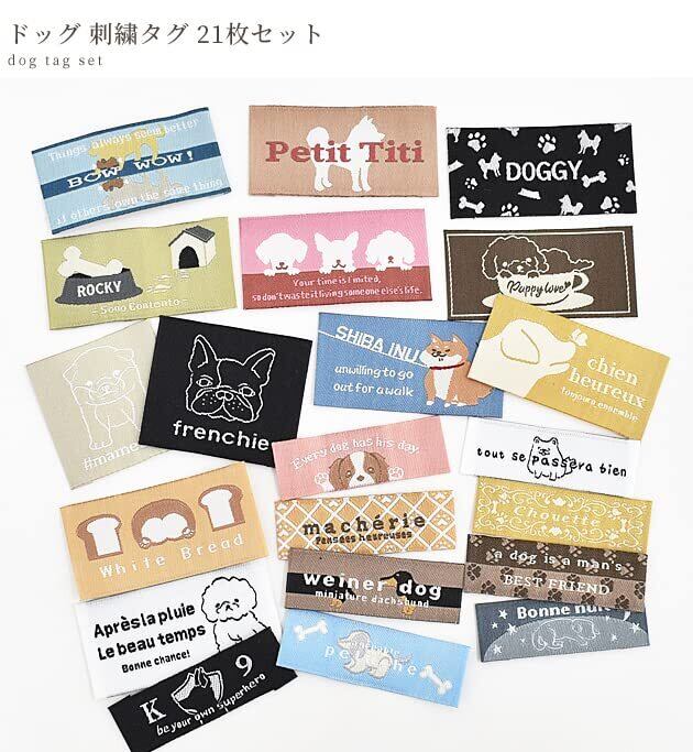 MYmama ドッグ 刺繍タグ 21枚セット ワッペン ハンドメイド ラベル