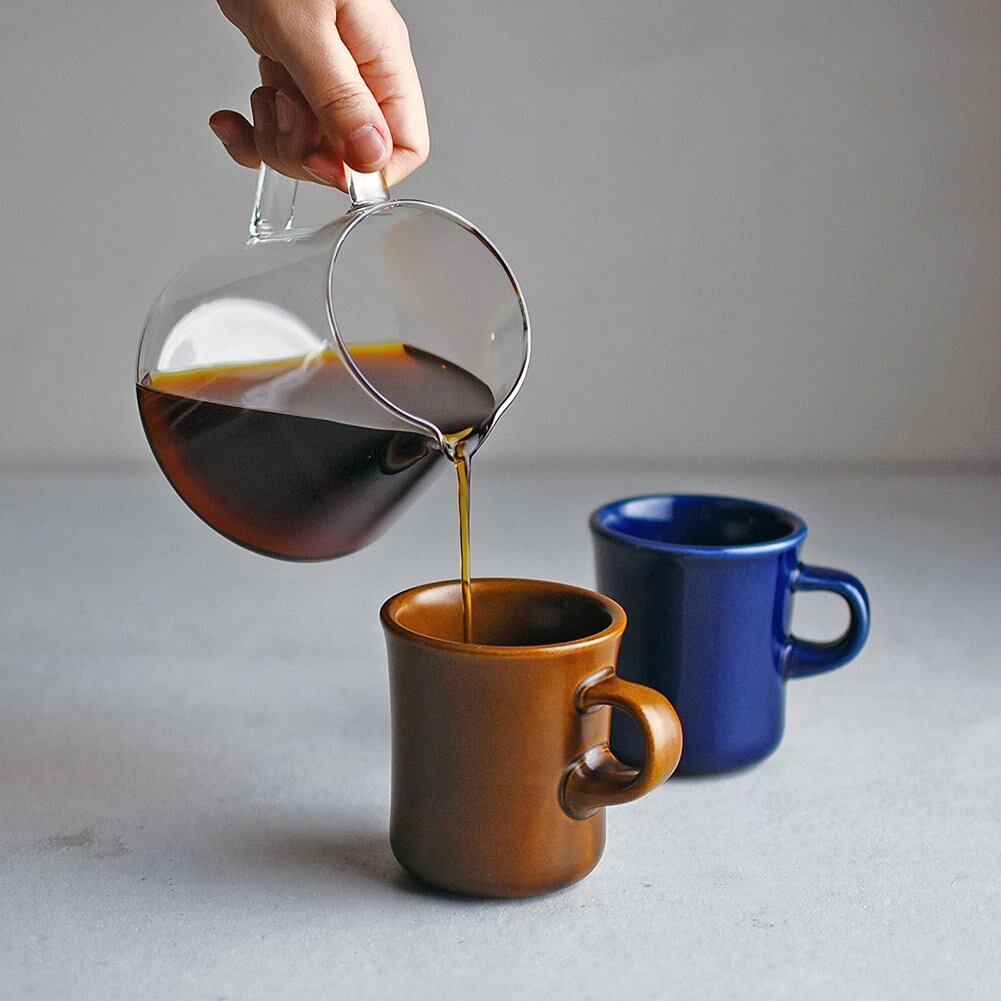 ゆったりとしたフォルムの耐熱ガラス製のサーバーはドリップの様子が見やすく、容量の目安となる目盛り付き。