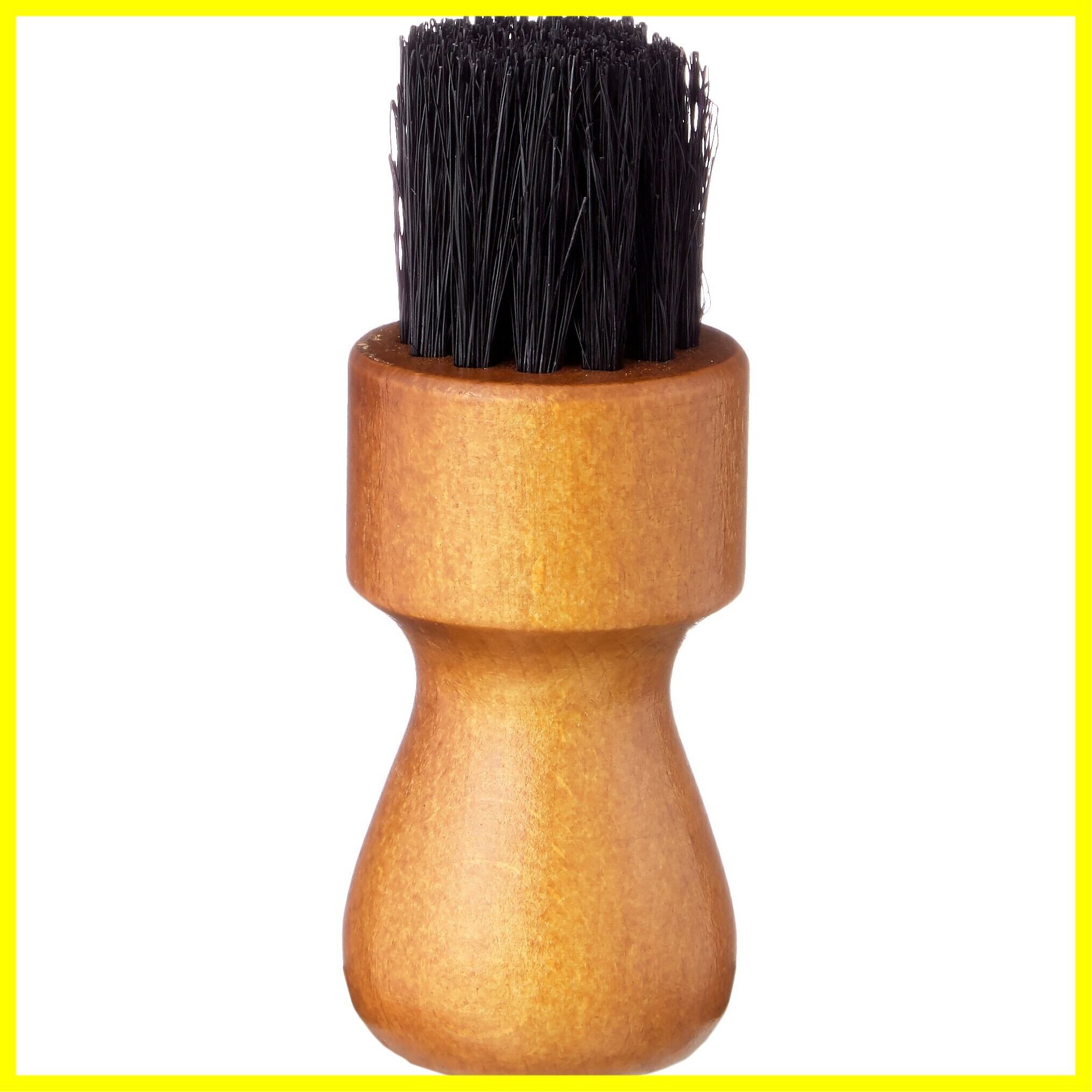 レザー製品のお手入れの際に、靴クリームなどをムラなく塗布できる豚毛ブラシです。