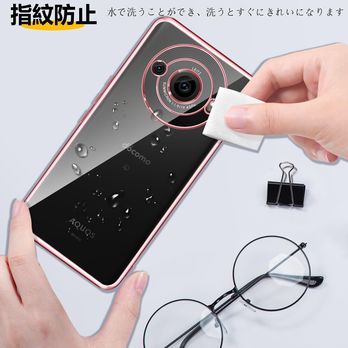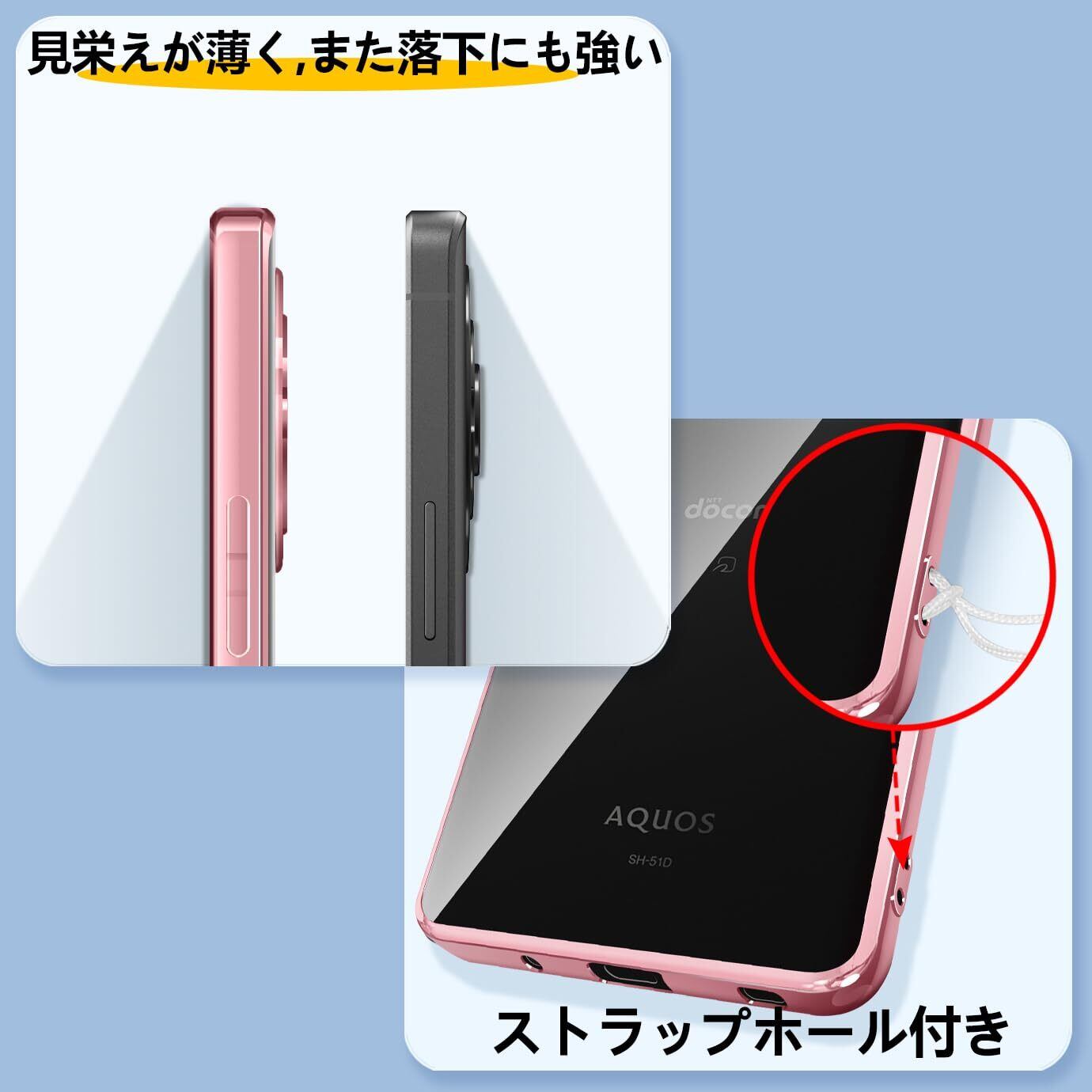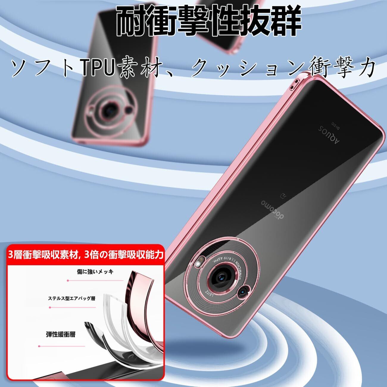 AQUOS R8 Pro ケース クリア 耐衝撃 アクオス R8 Pro SH-51D 透明 カバー 衝撃吸収 可愛い 柔らかい ワイヤレス充電 メッキ加工 薄型 ファッション 人気 滑り止め 黄ばみ防止 指紋防止 軽量 TPU 保護カバー(ローズゴールド)