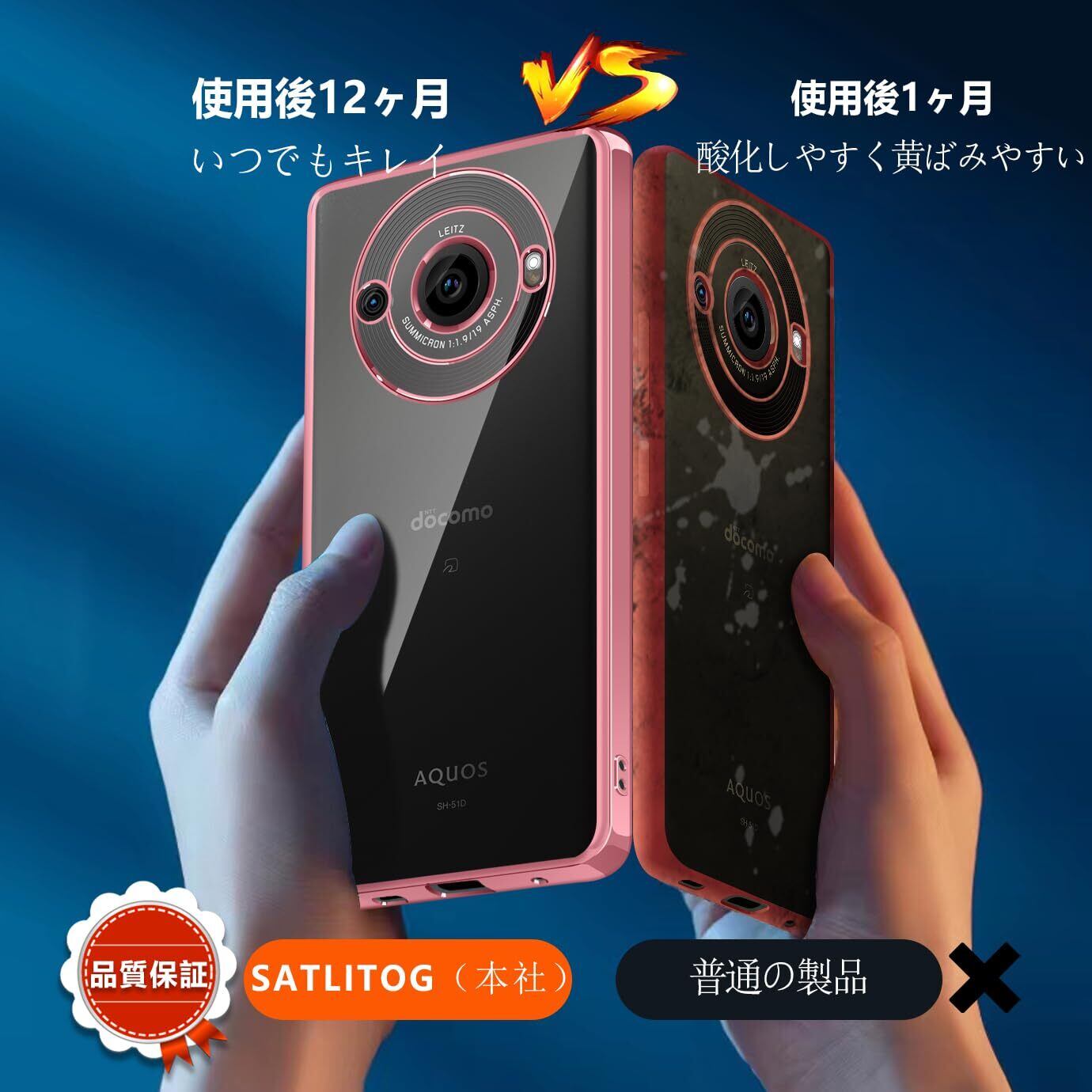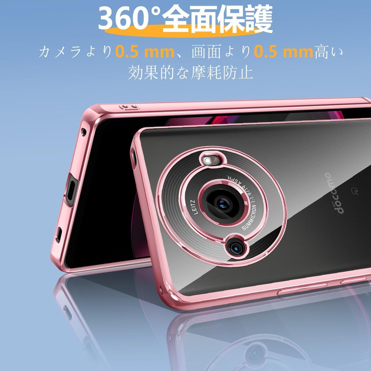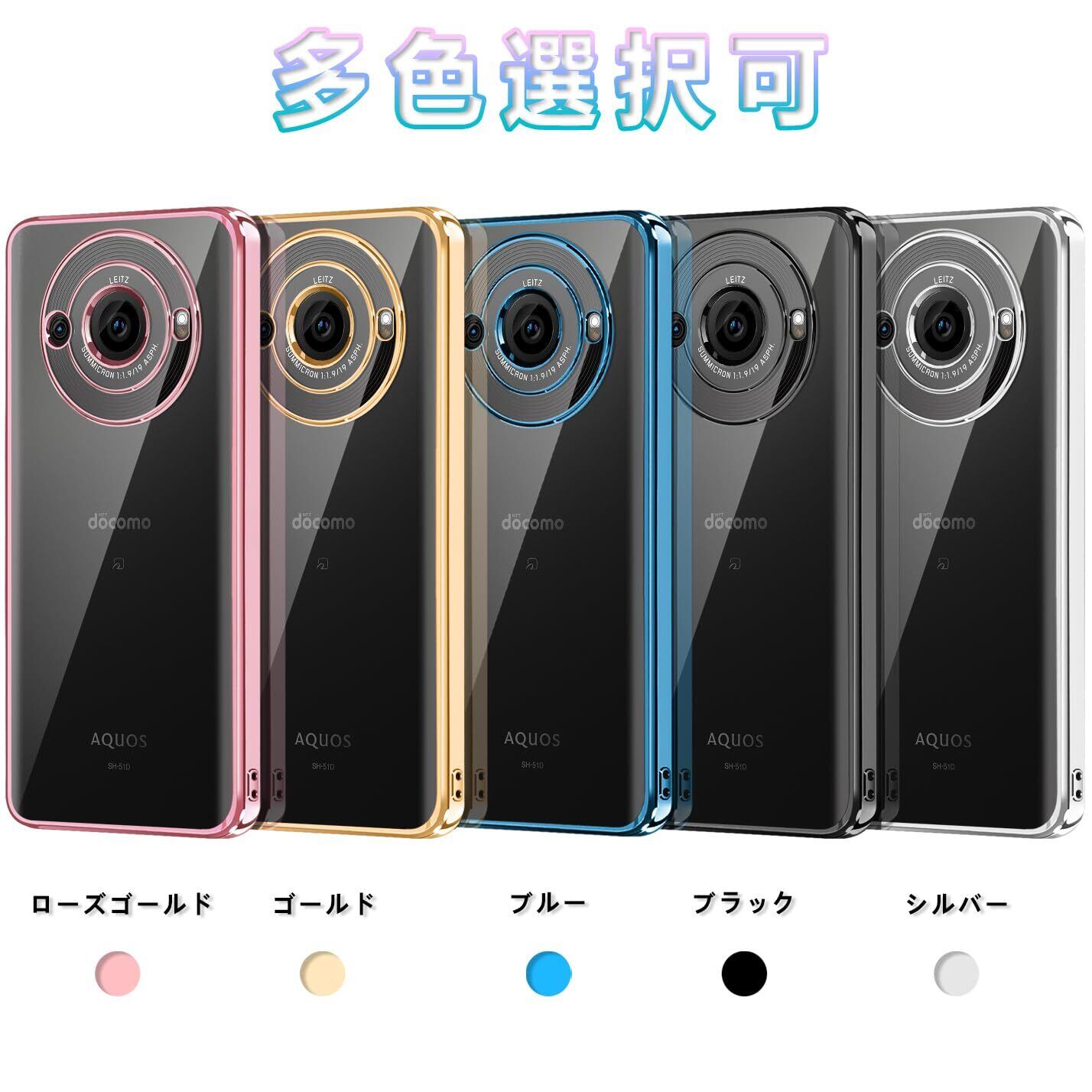 AQUOS R8 Pro ケース クリア 耐衝撃 アクオス R8 Pro SH-51D 透明 カバー 衝撃吸収 可愛い 柔らかい ワイヤレス充電 メッキ加工 薄型 ファッション 人気 滑り止め 黄ばみ防止 指紋防止 軽量 TPU 保護カバー(ローズゴールド)