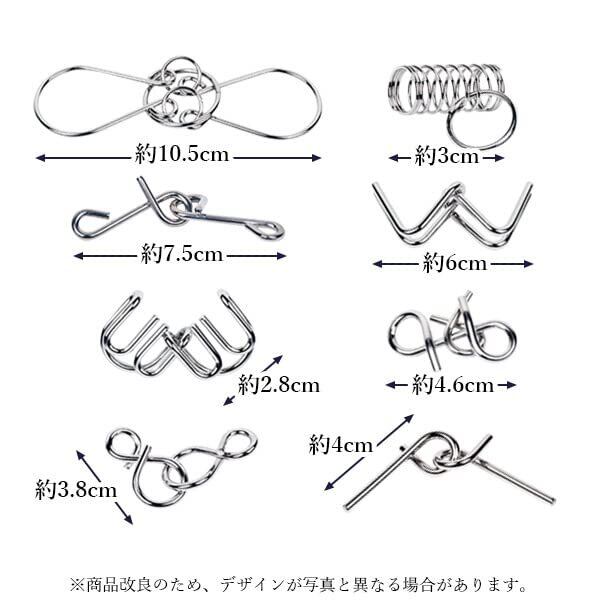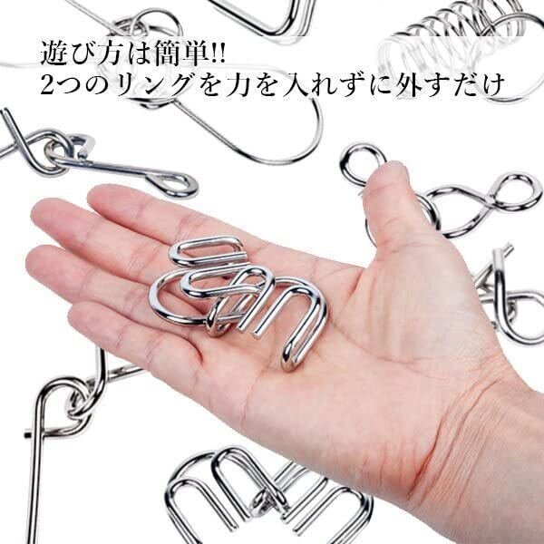 【商品説明】 ・大人も子供も楽しめる知恵の輪8点セットです。ちょっとしたスキマ時間を使って楽しく脳トレができます。 ・遊び方は簡単!!2つのリングを力を入れずに外せれば成功です!! ・楽しく遊べて頭の運動になります。 ・お子さまの勉強や教育に。大人の方も頭の回転を良くしてくれます。