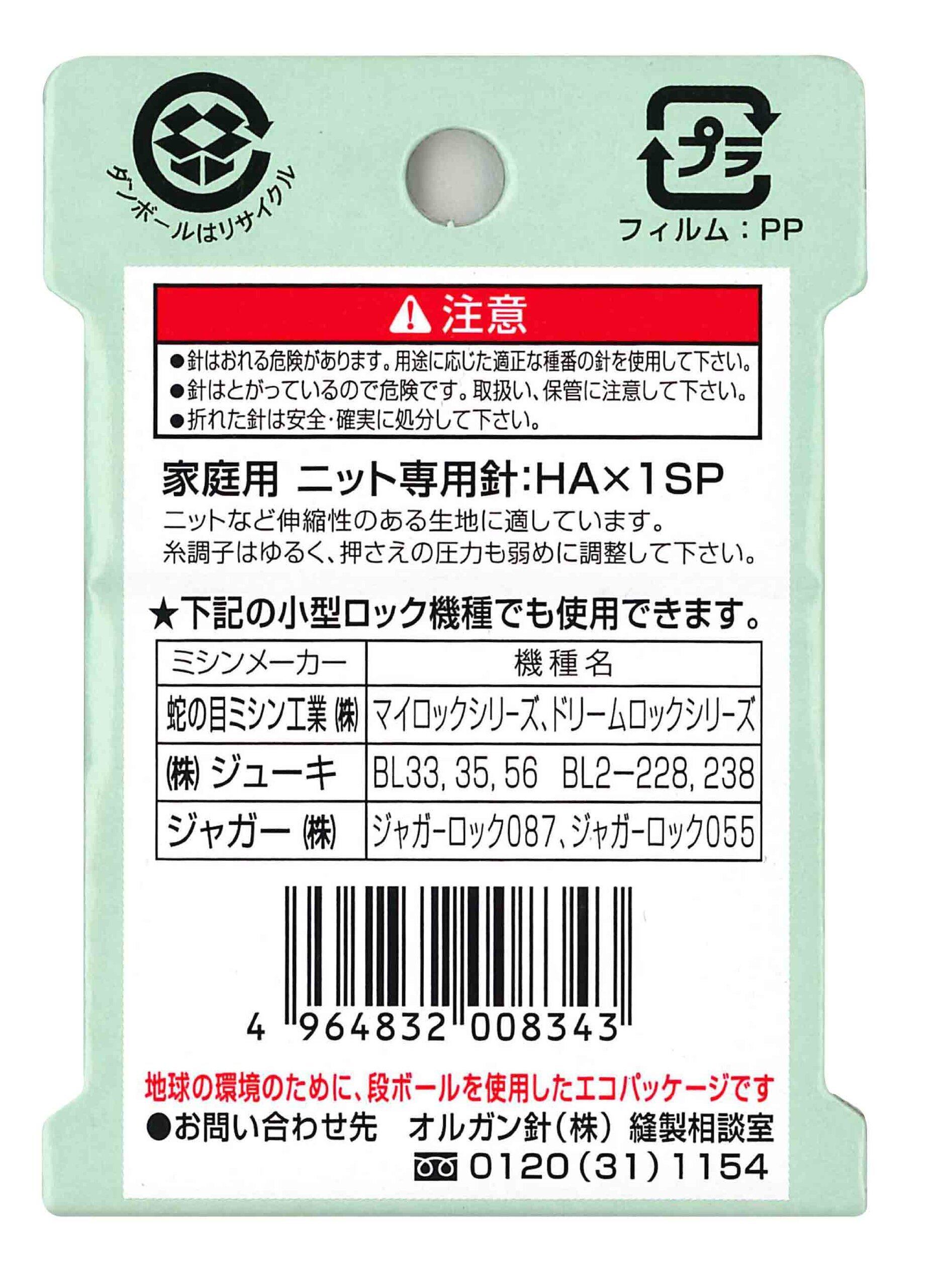オルガン針 ORGAN NEEDLES 家庭用ミシン針 HA×1SP #11 普通地用ニット専用