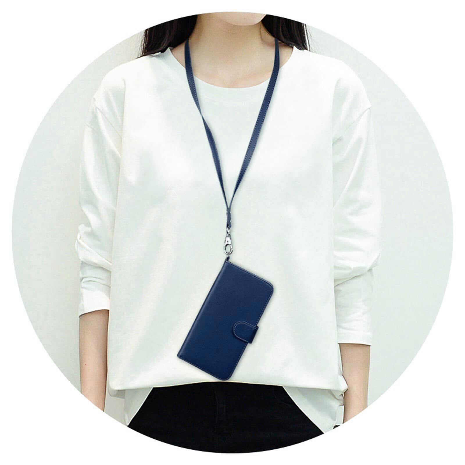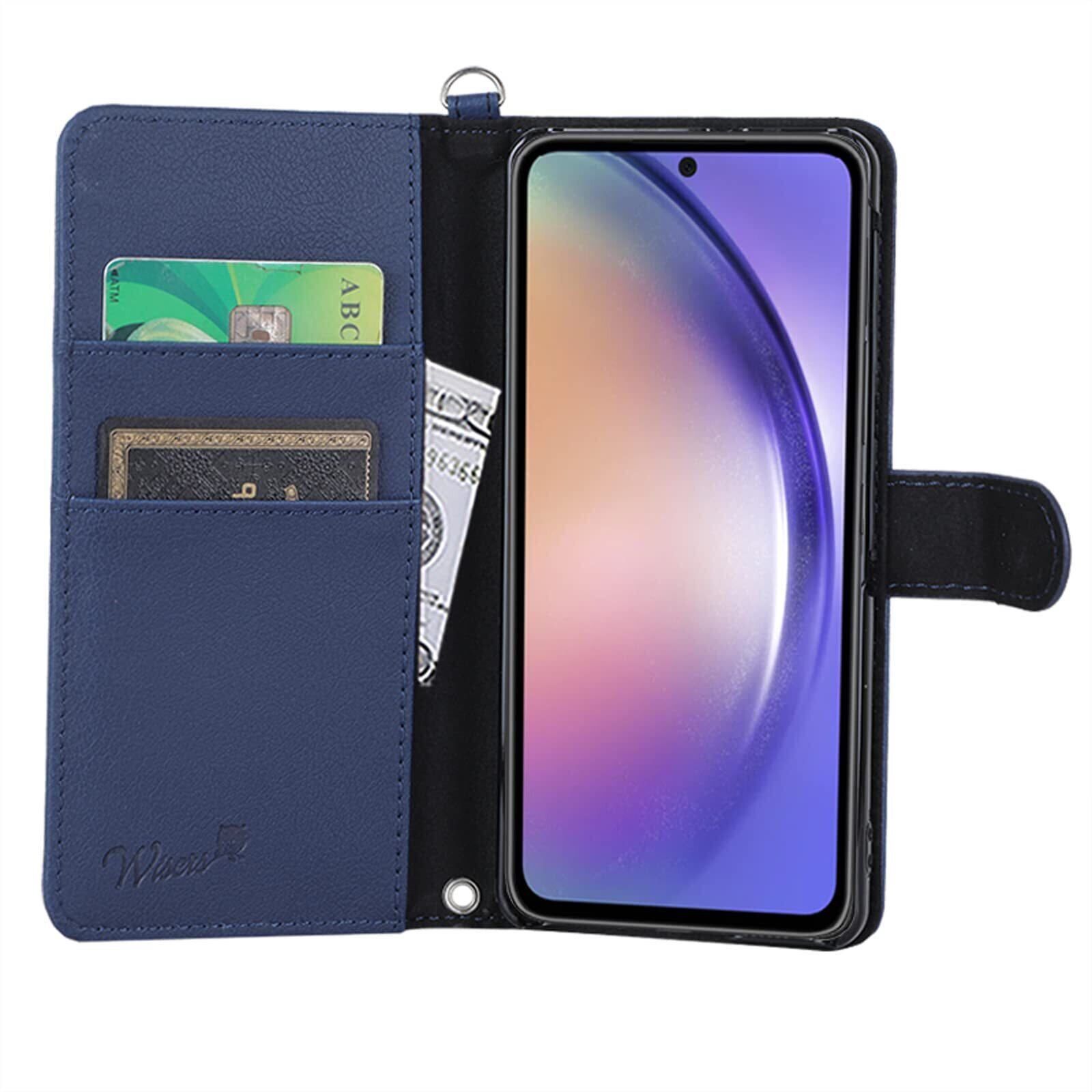 wisers Galaxy A54 5G SC-53D SCG21 対応 手帳型 スマホケース (ダークブルー) 牛革PUレザー (カードホルダー/スタンド機能付) ストラップ 2種付き (ハンドストラップ/ネックストラップ)