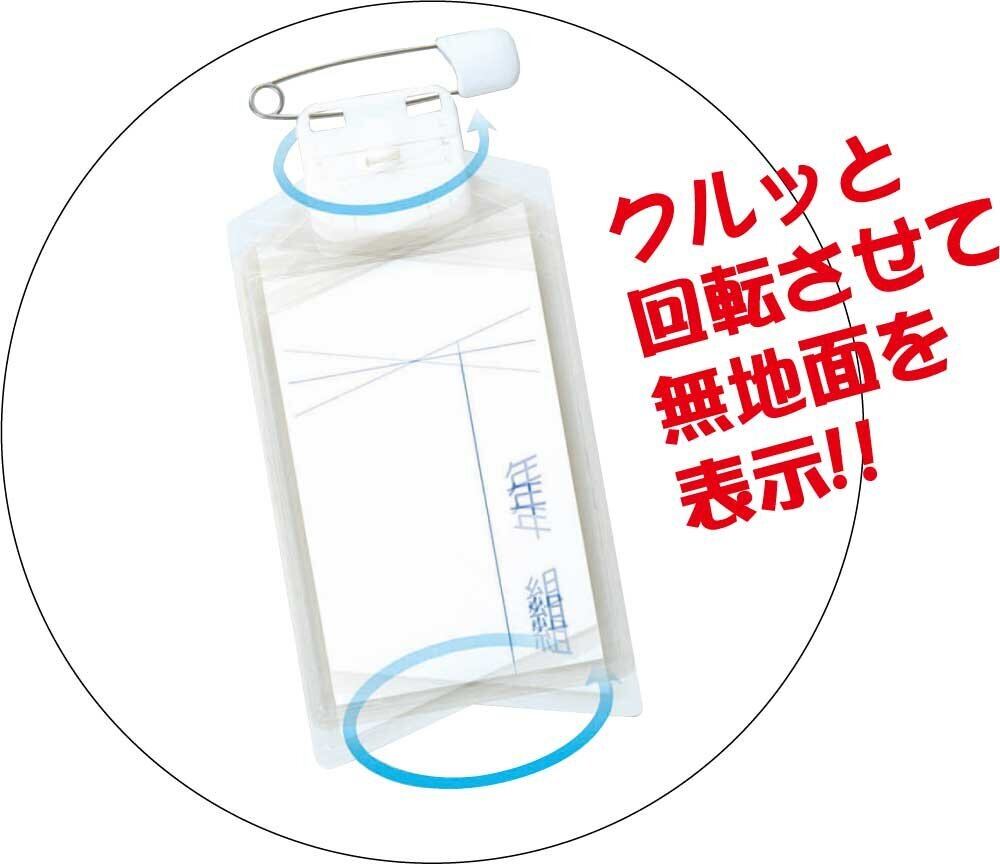 リップ部分が回転するので、取り付けたまま簡単に裏返す(名前を隠す)事が出来る名札。