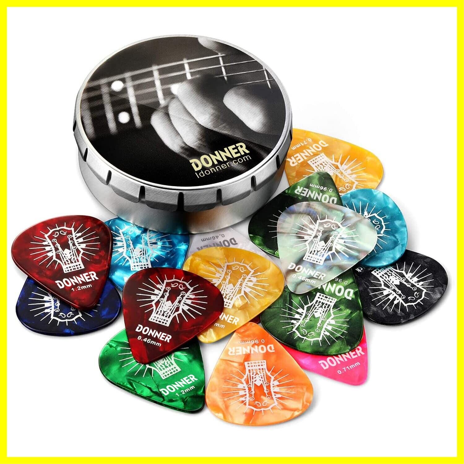 16種の品質セルロイドピック--- 8つ以上の美しいカラーデザイン。4つの異なる厚さ --- Thin (0.46mm); Medium (0.71mm) ; Heavy (0.96mm); Extra Heavy (1.2mm)