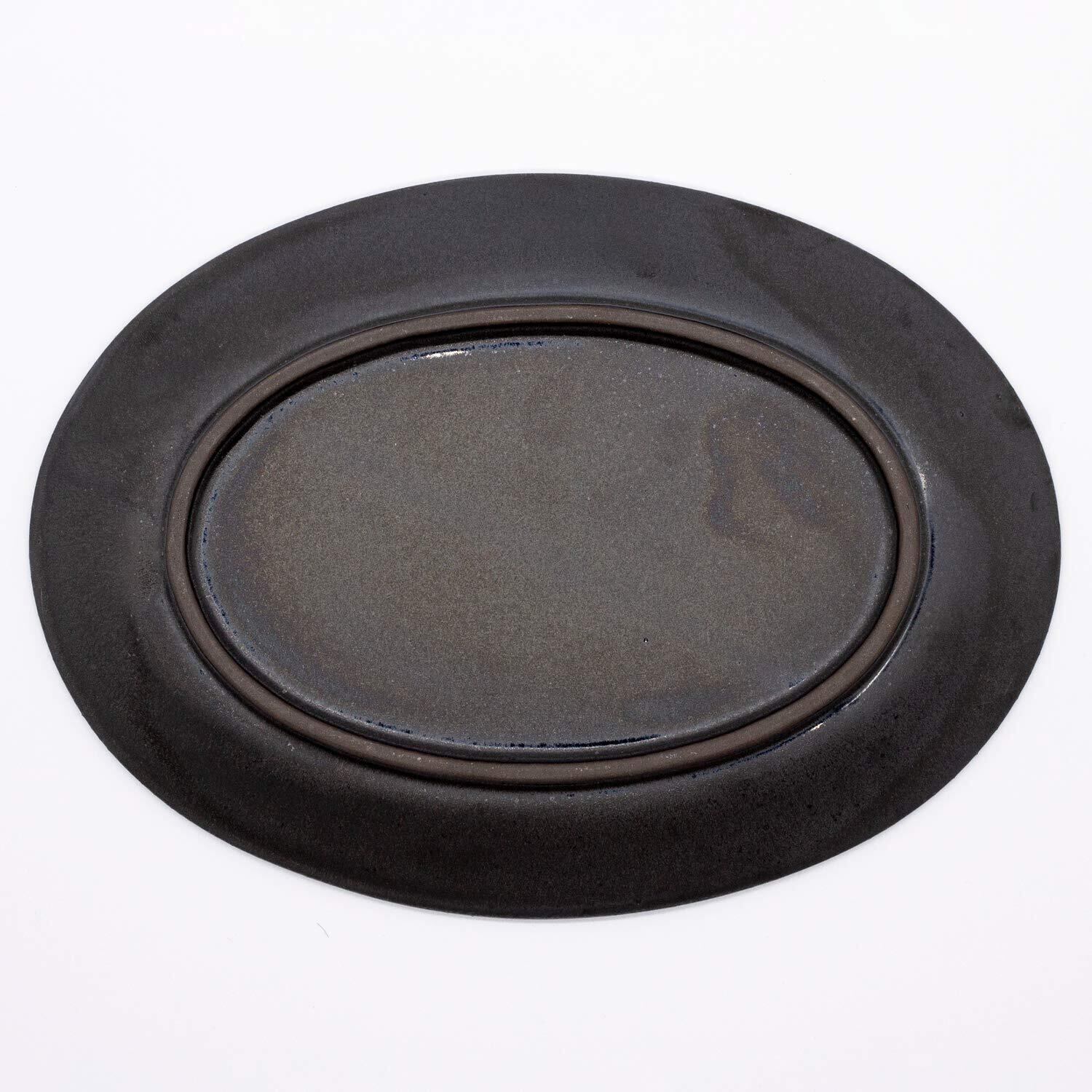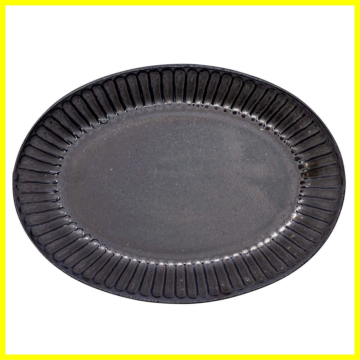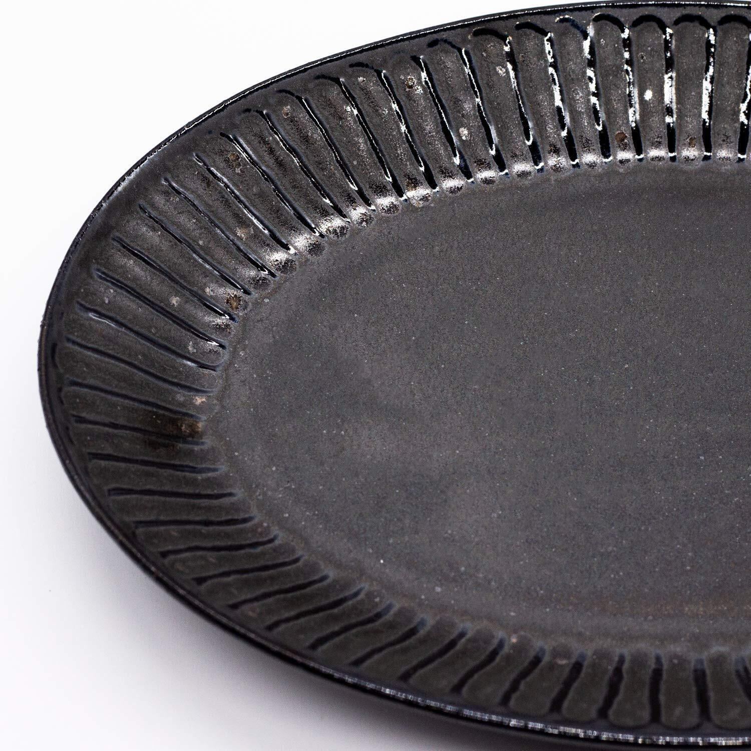 美濃焼 「 SHINOGI 」 オーバル プレート 皿 カレー & パスタ ブラック 直径約25cm しのぎ 楕円 黒 一洋陶苑 電子レンジ対応 日本製 513-0005