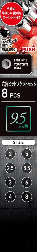 セット内容:六角ビット(9.5mm角):2・2.5・3・4・5・5.5・6・8mm×各1、ホルダー×8、レール×1
